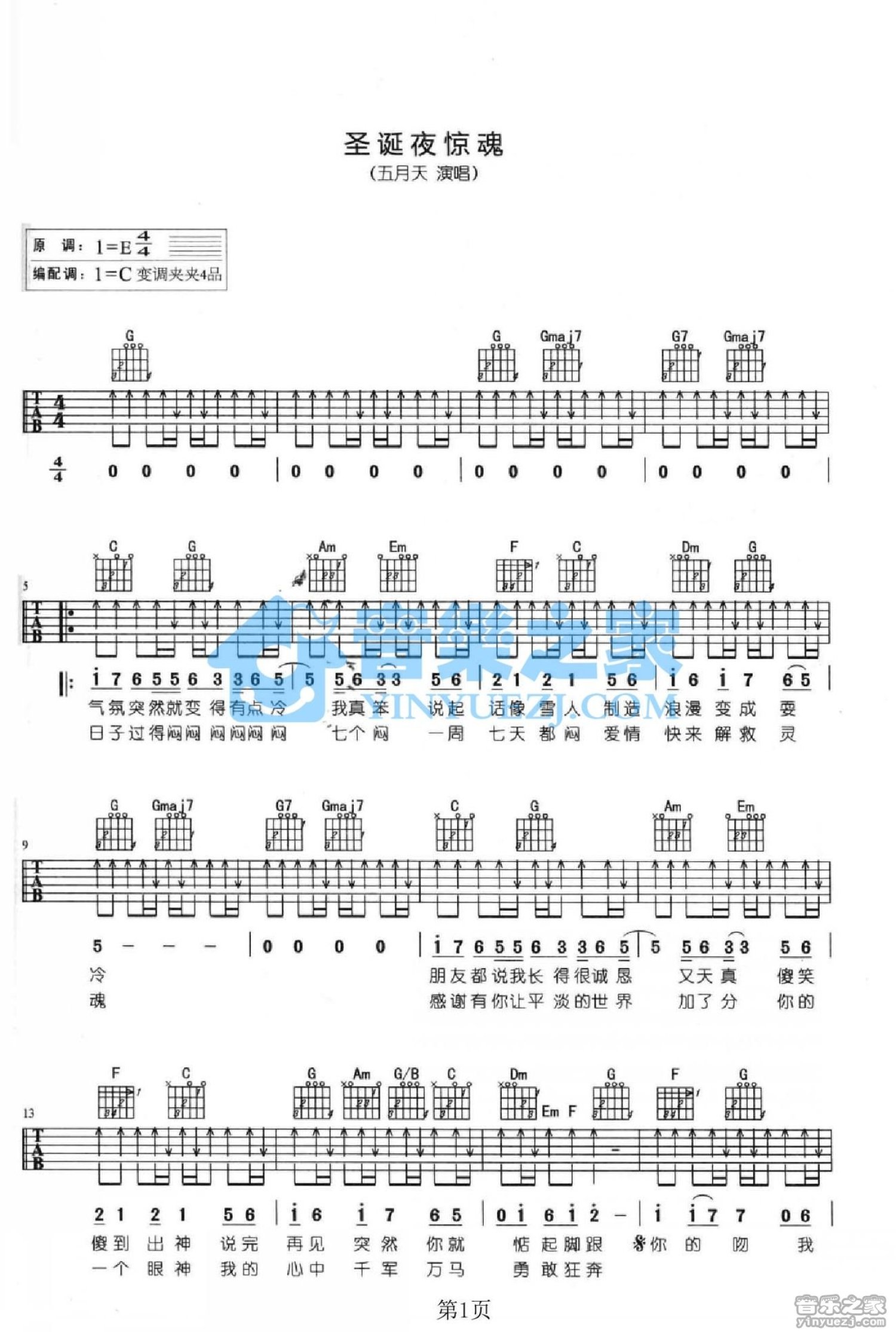 曲谱介绍: C调版 五月天《圣诞夜惊魂》吉他弹唱六线谱