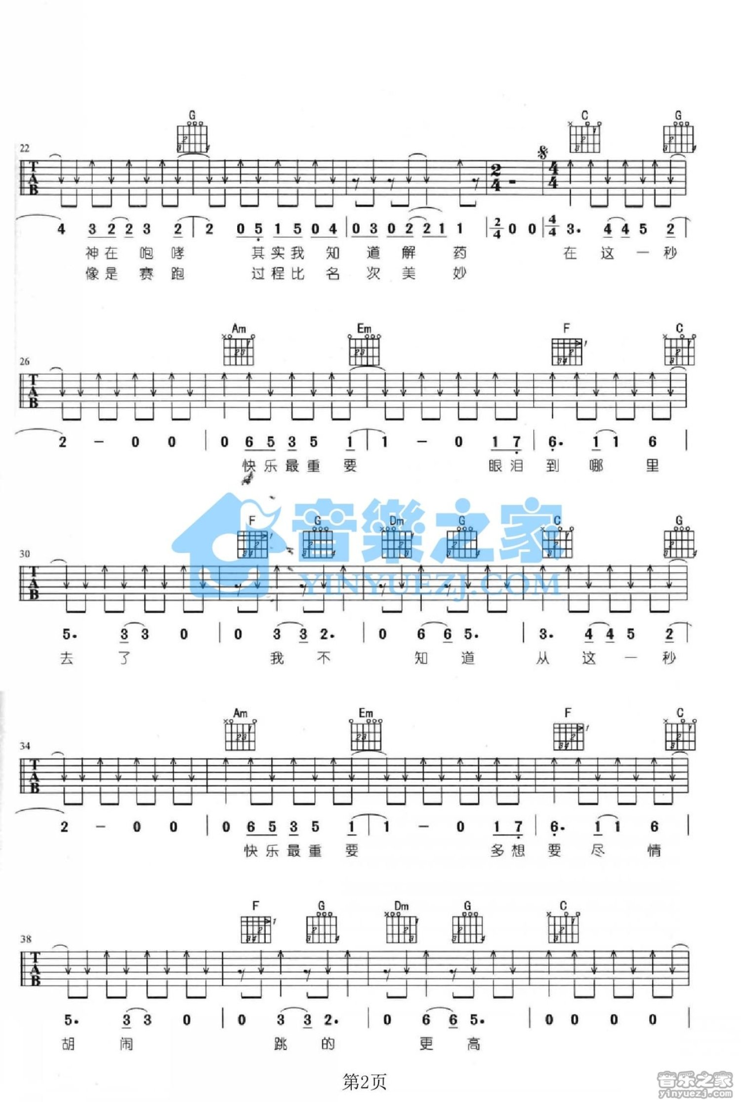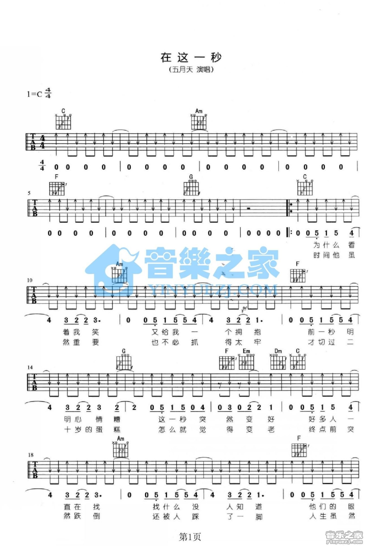 曲谱介绍: C调版 五月天《在这一秒》吉他弹唱六线谱