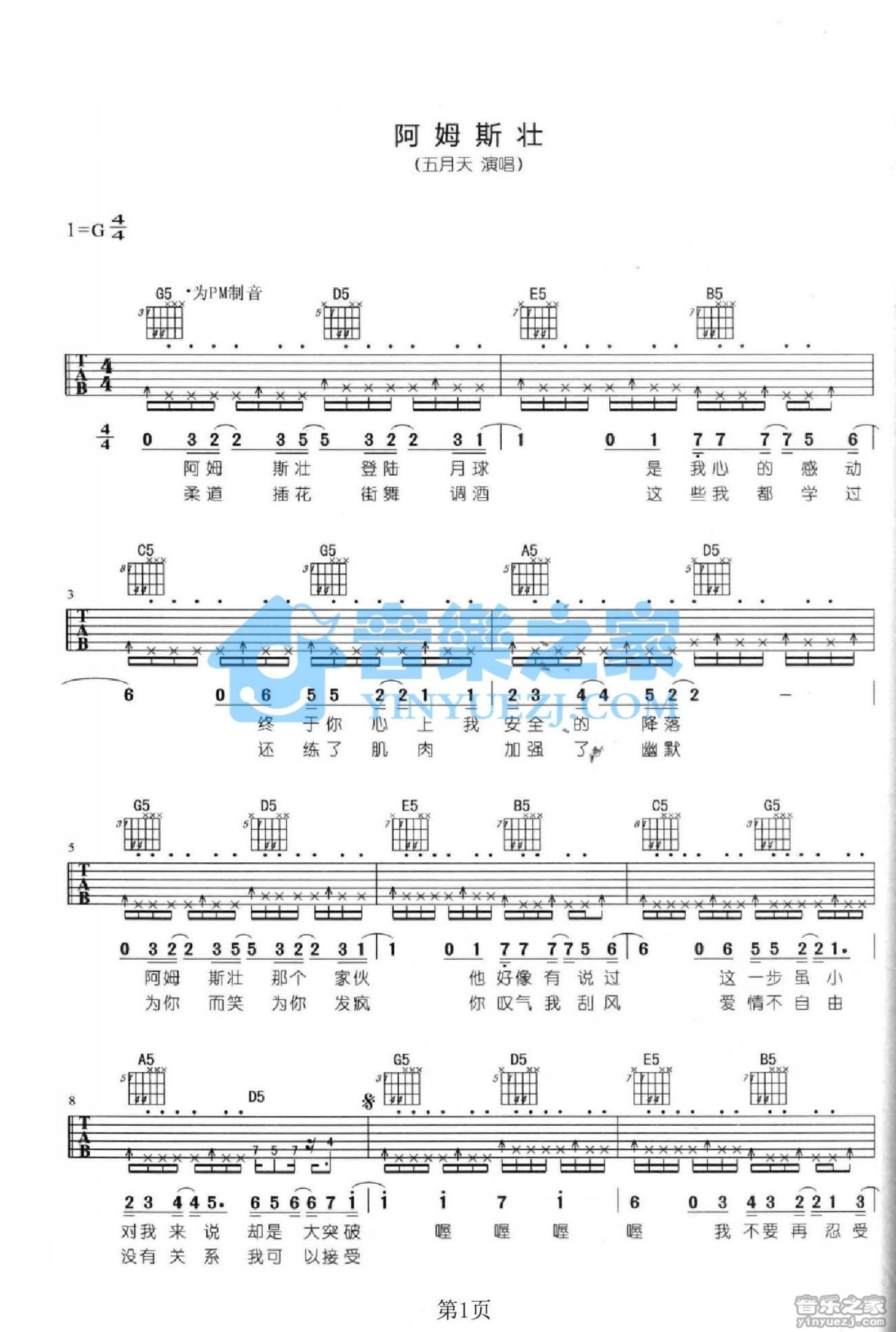 曲谱介绍: G调版五月天《阿姆斯壮》吉他弹唱六线谱