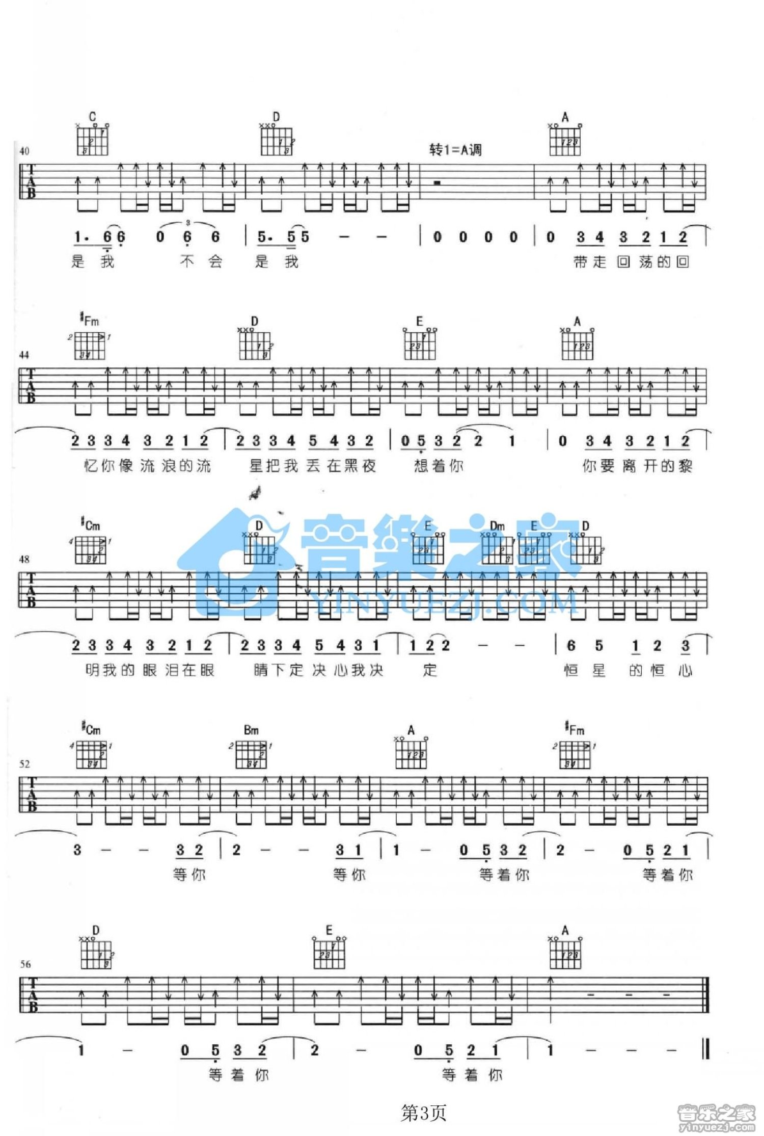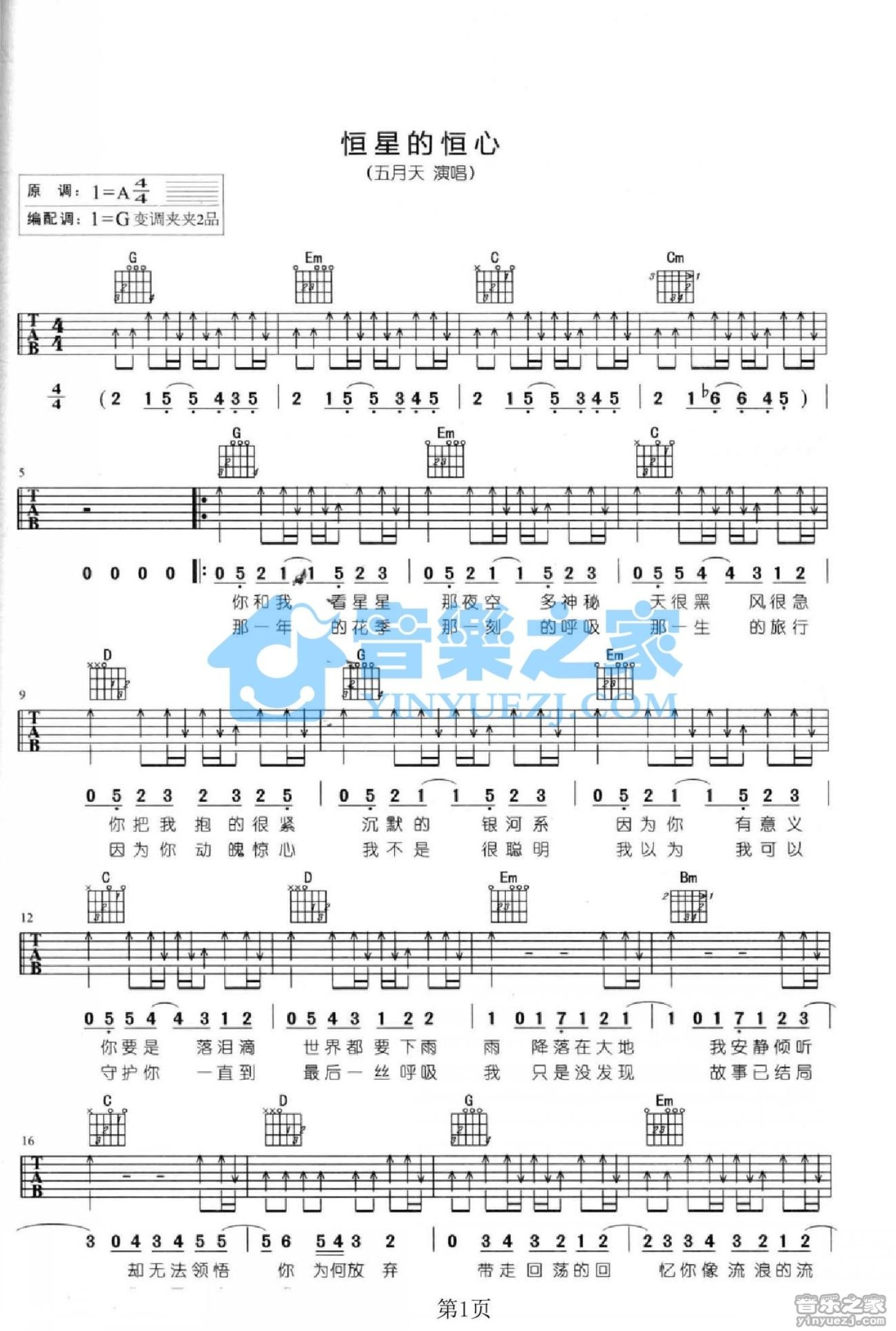 曲谱介绍: G调版 五月天《恒星的恒心》吉他弹唱六线谱