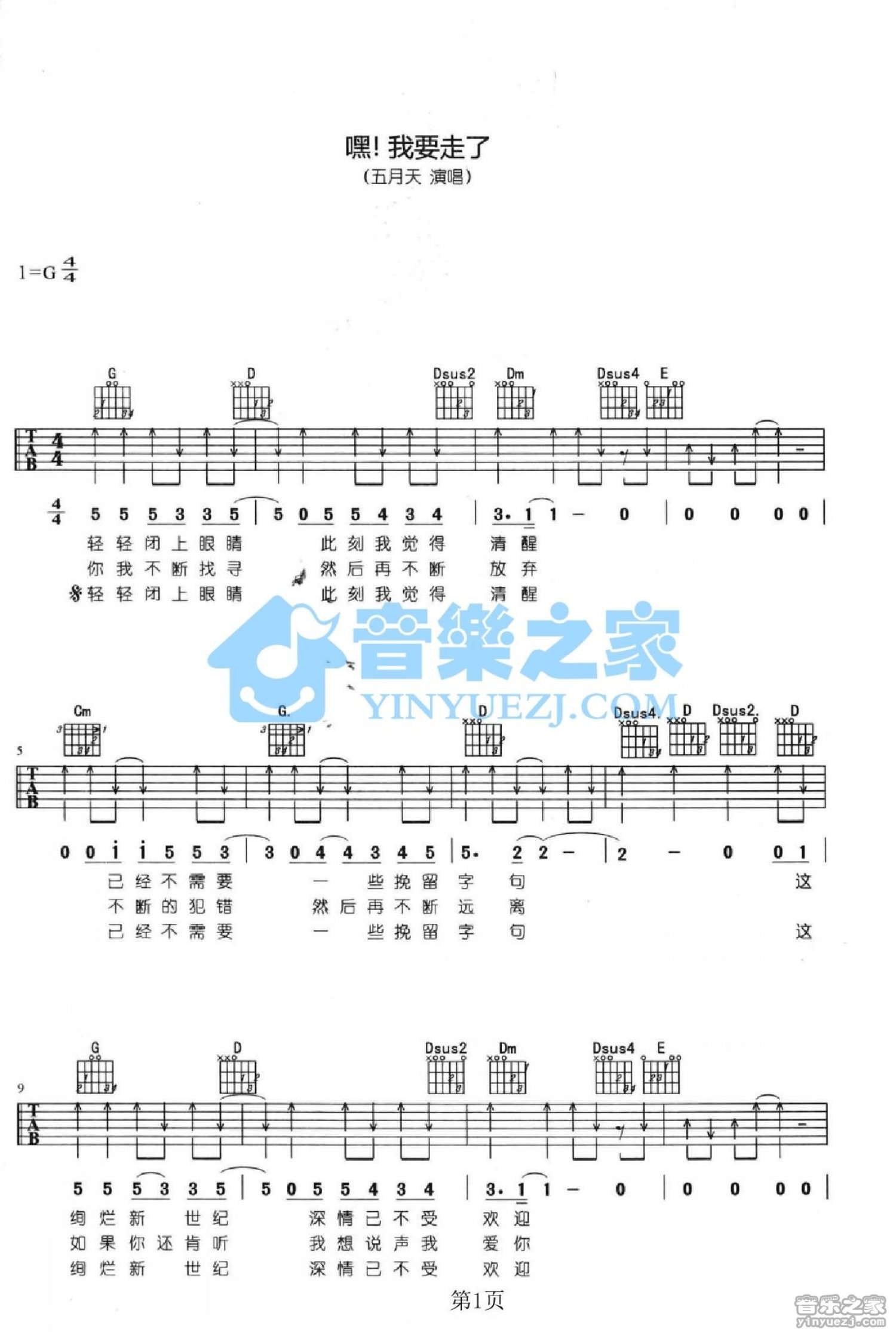 嘿我走了吉他谱 - 五月天 - G调吉他弹唱谱
