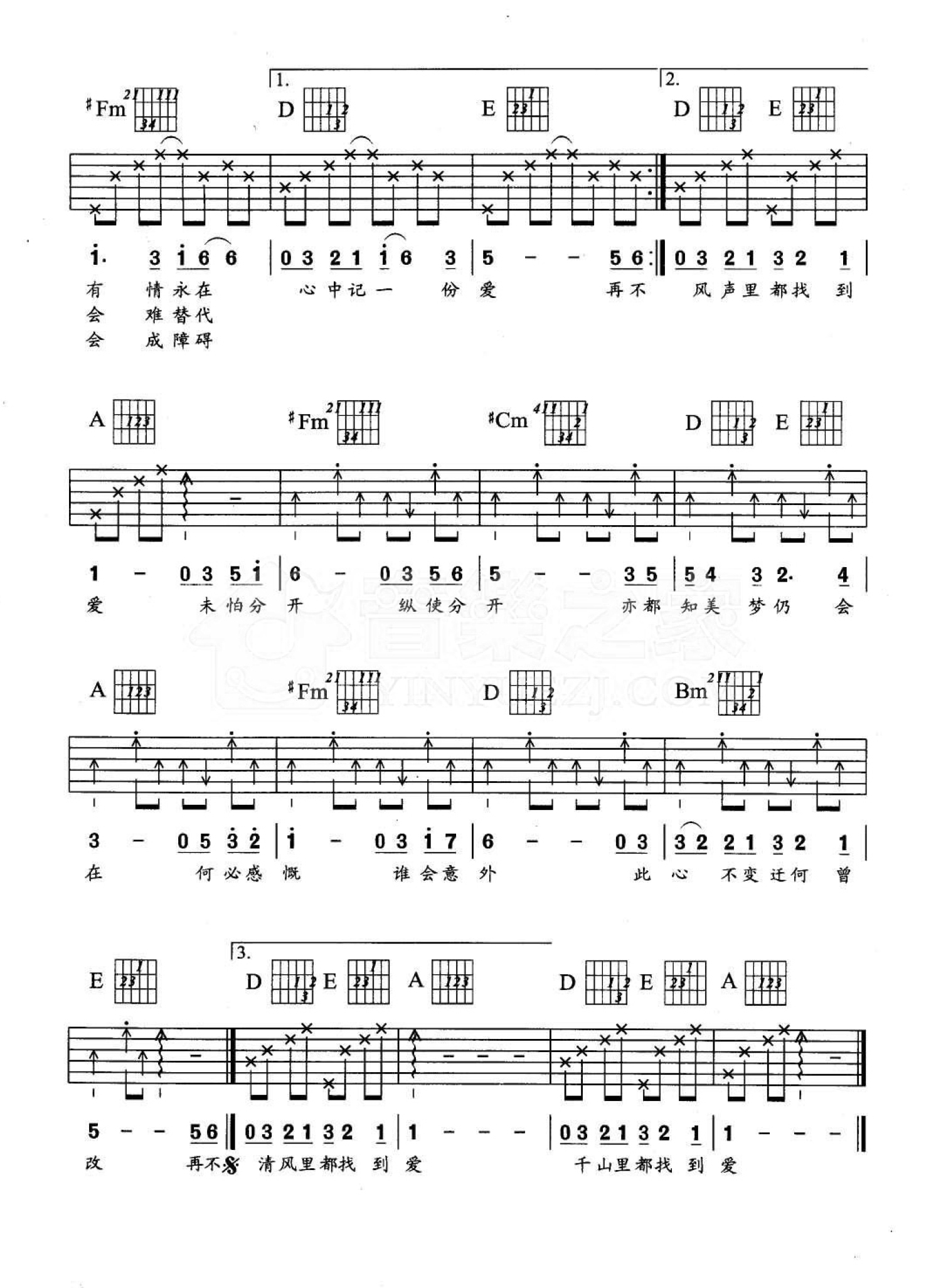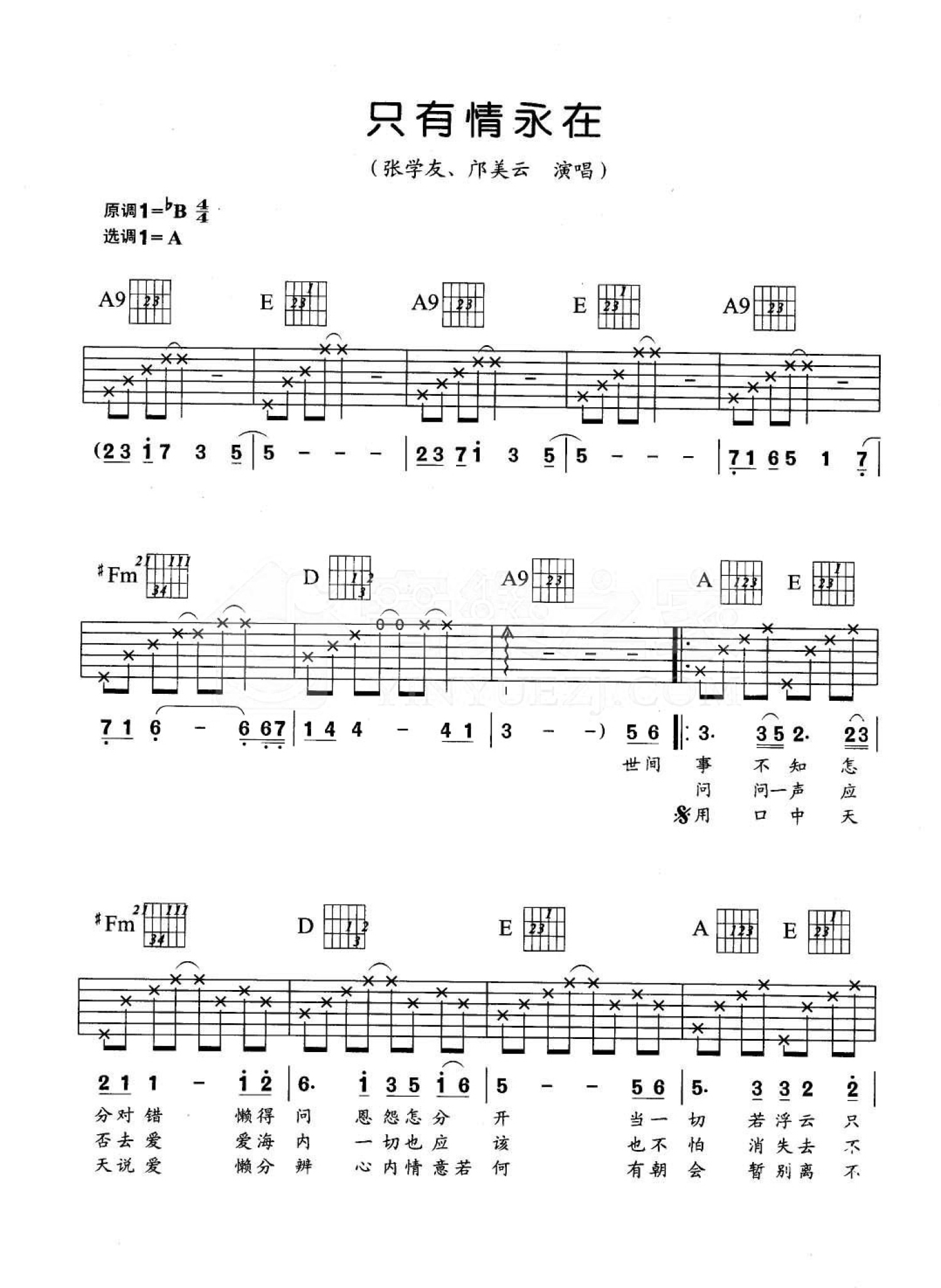 曲谱介绍: A调版张学友《只有情永在》吉他弹唱六线谱