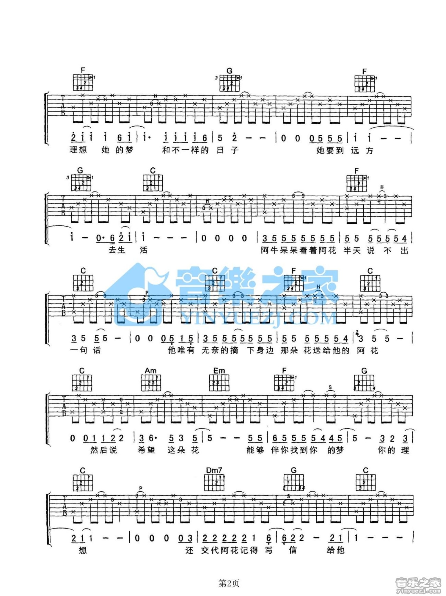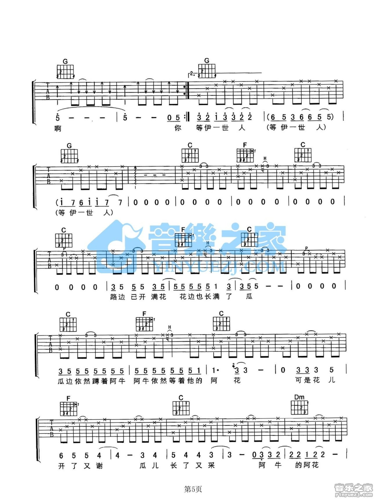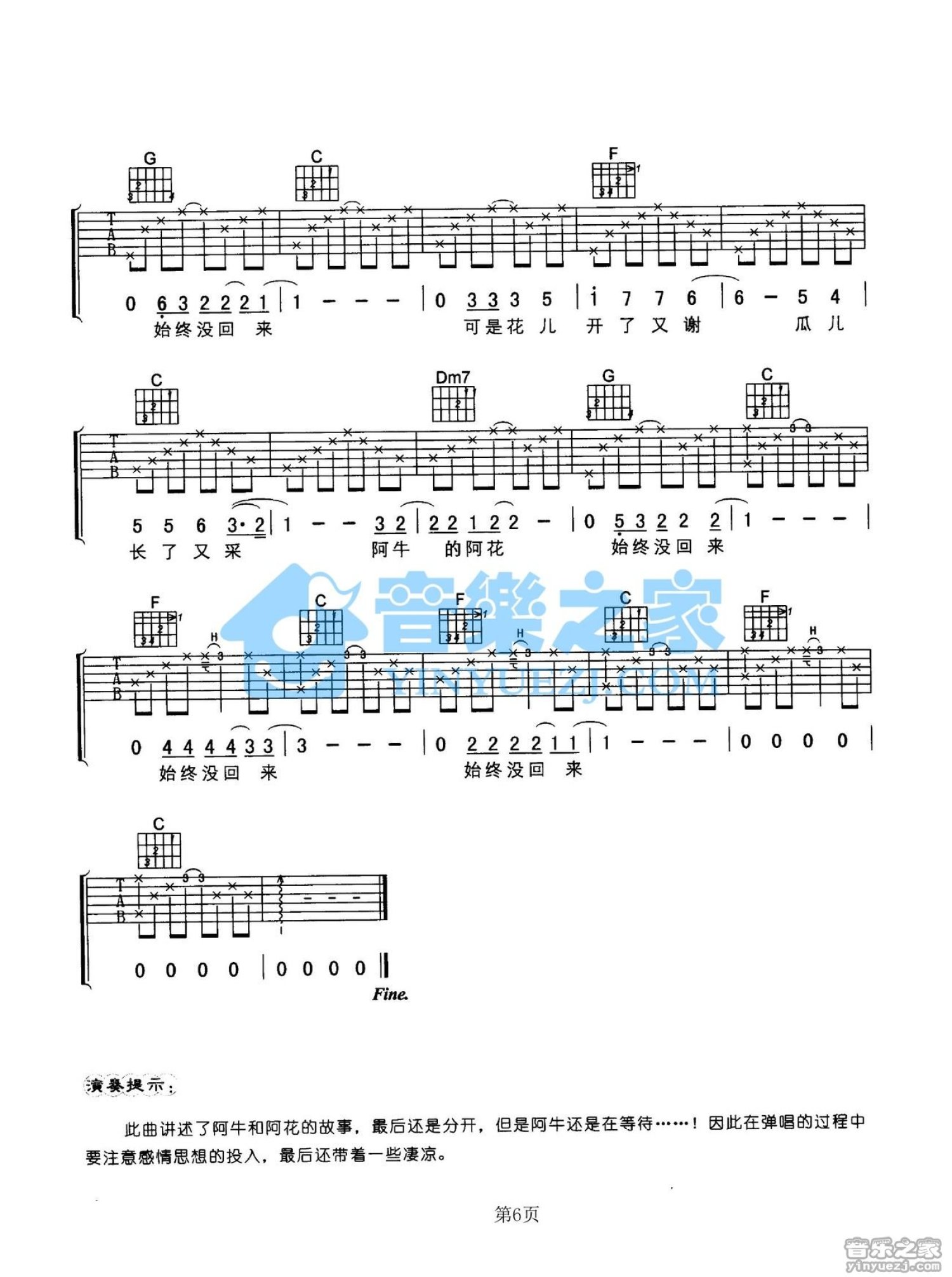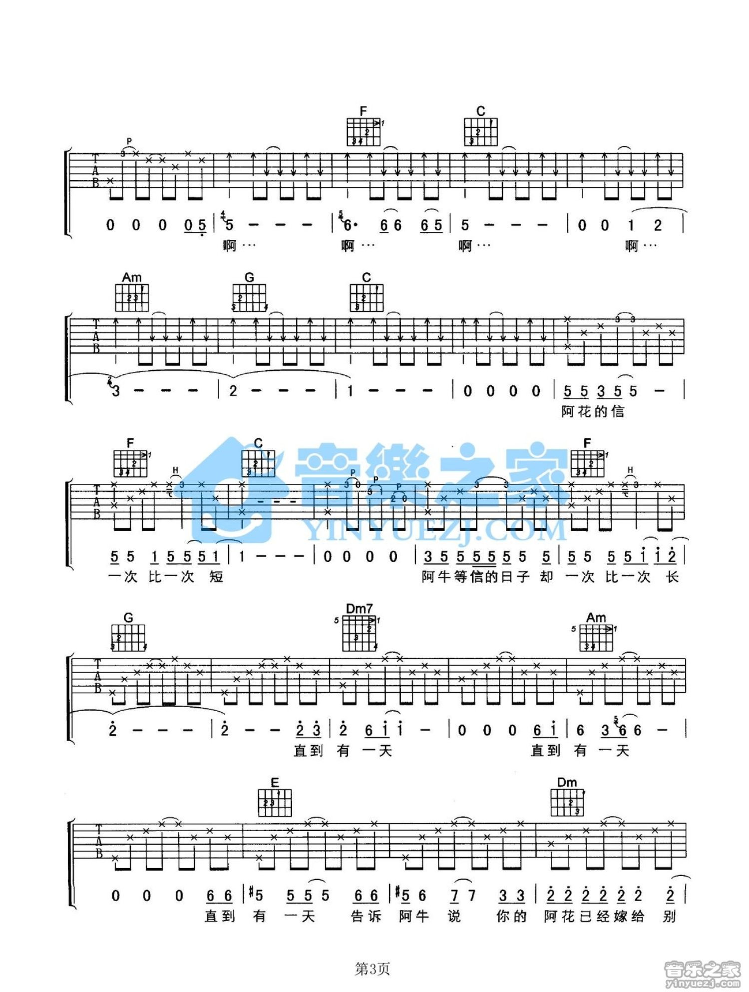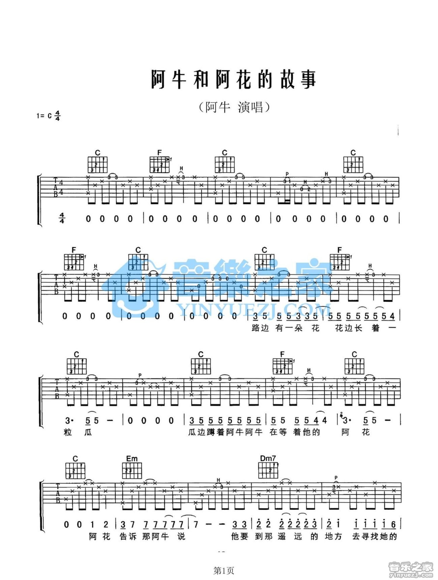 曲谱介绍: C调版 阿牛《阿牛和阿花的故事》吉他弹唱六线谱