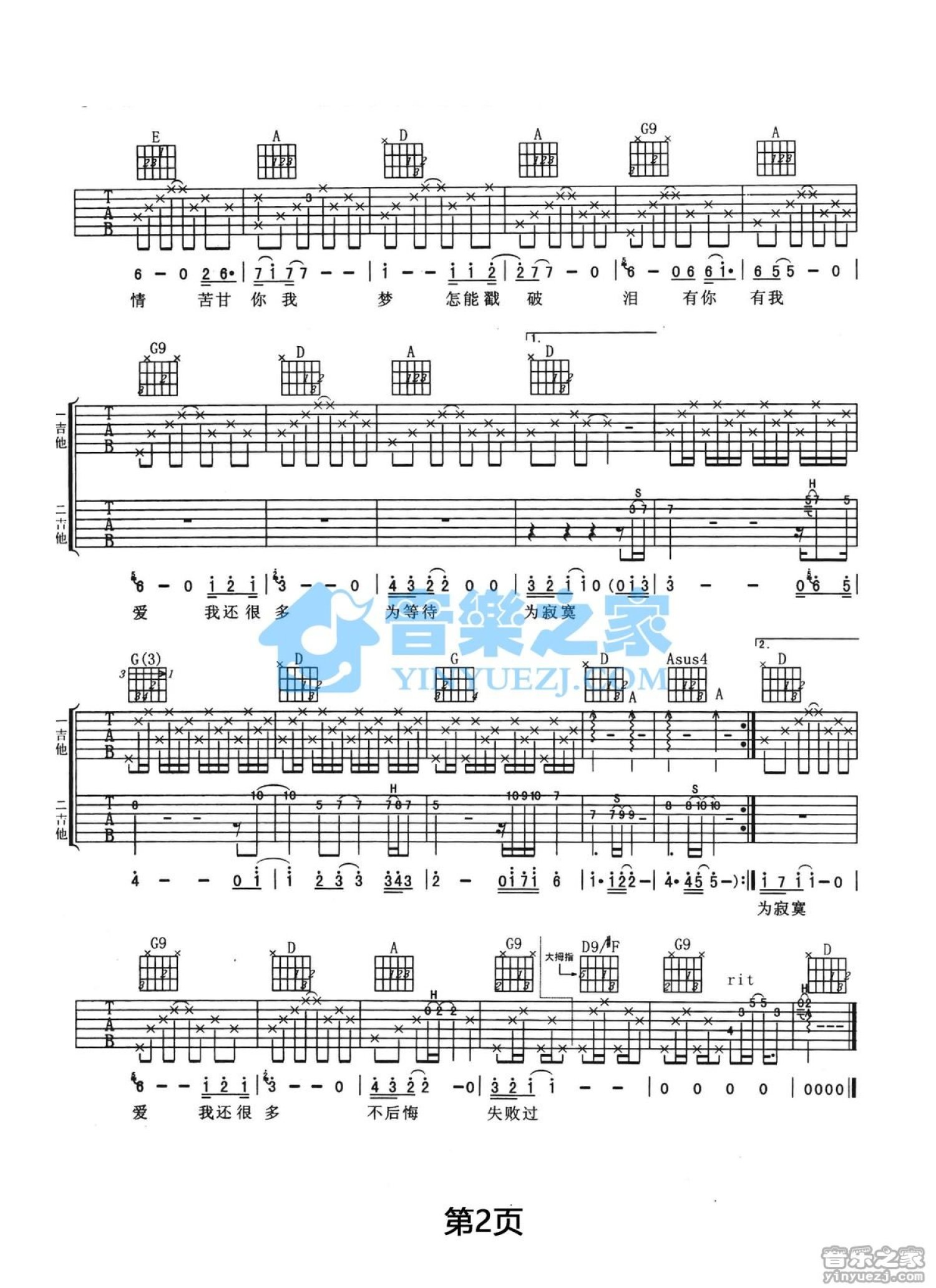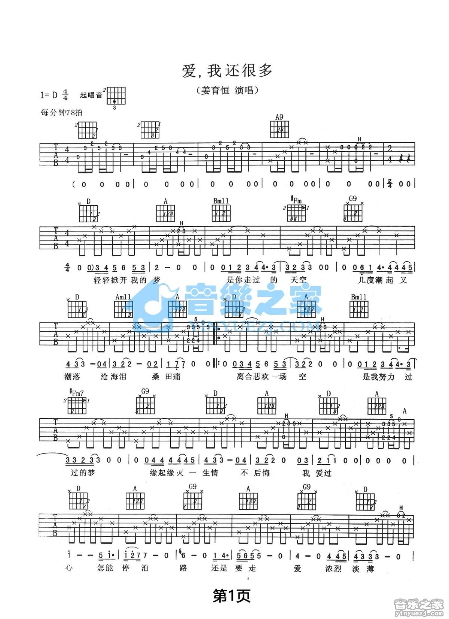 曲谱介绍: D调双吉他版 姜育恒《爱我还很多》吉他弹唱六线谱
