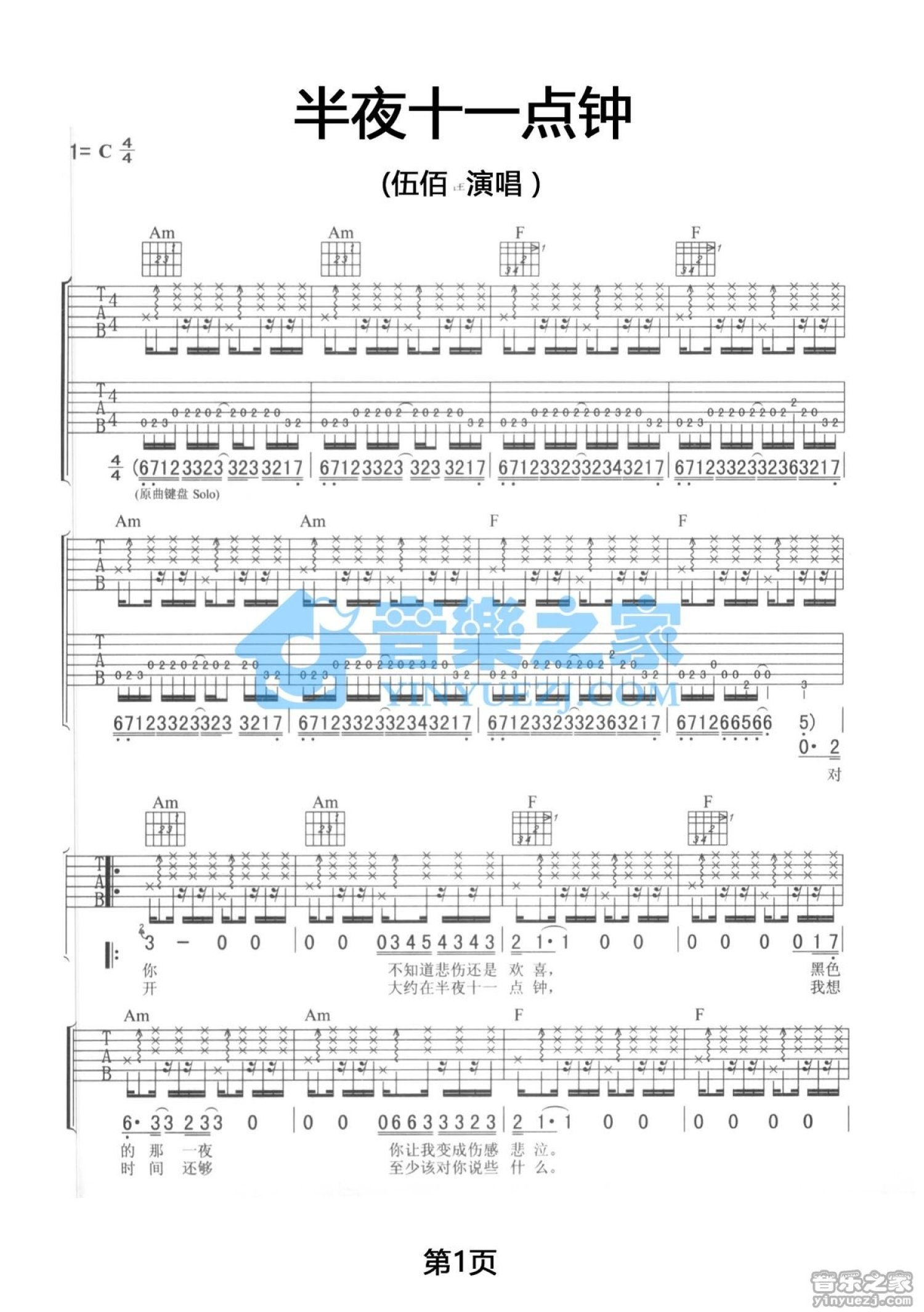 当前位置:琴谱网>吉他弹唱>半夜十一点钟