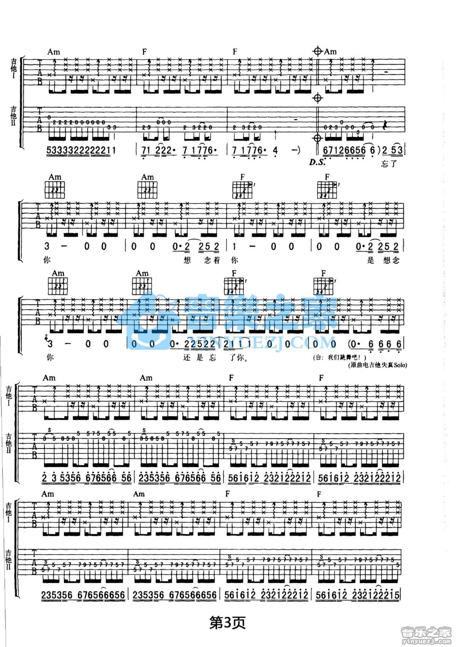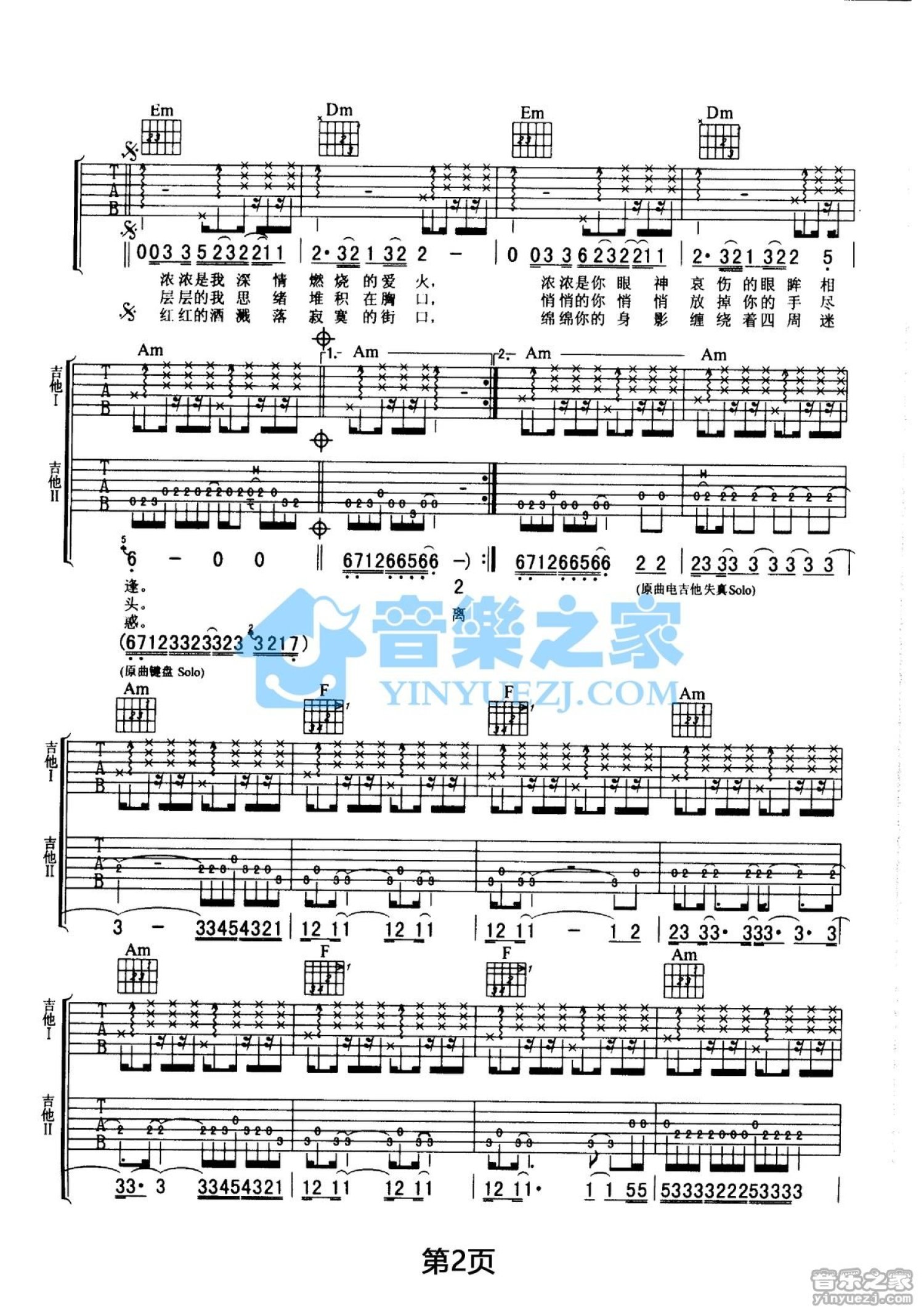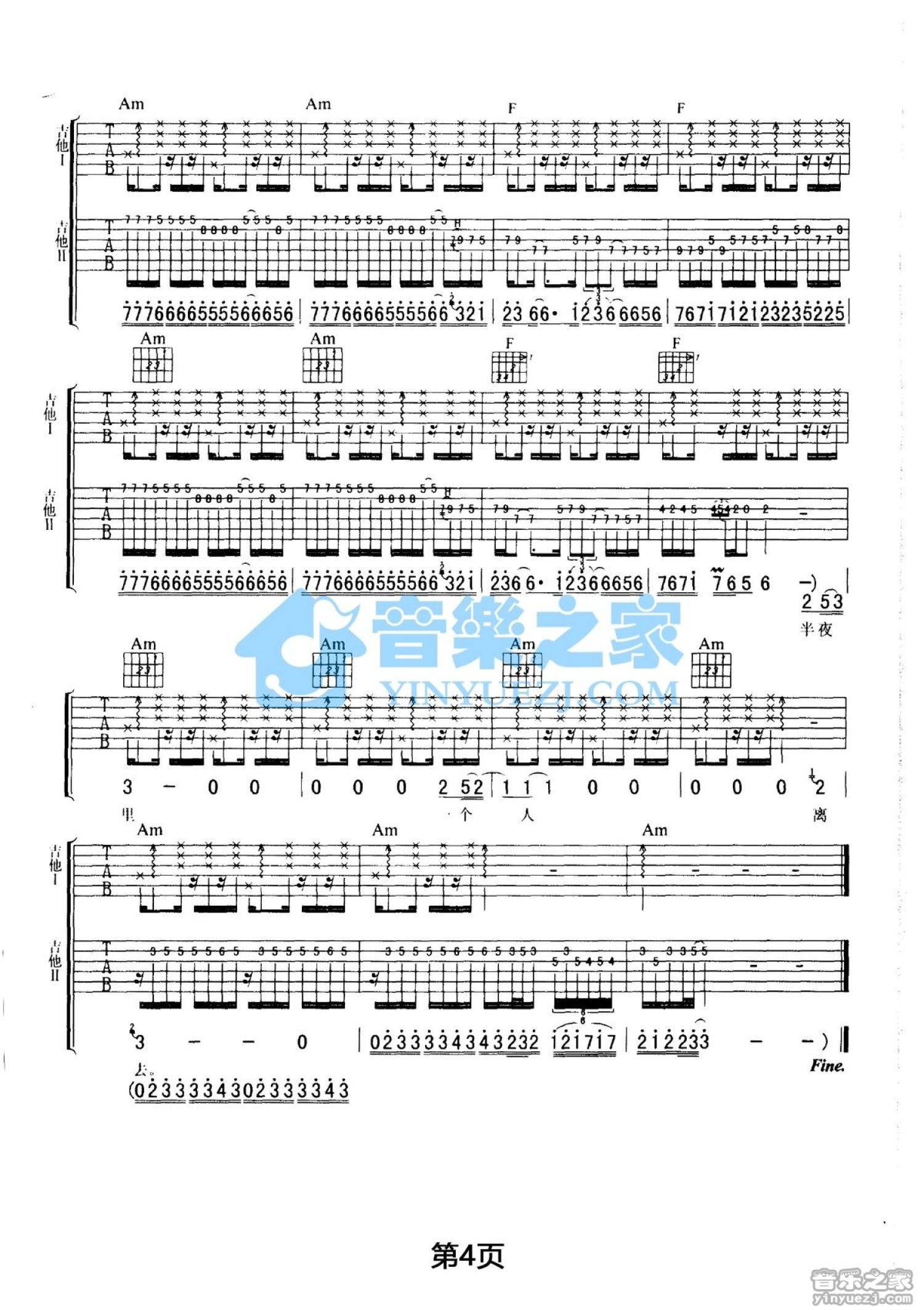 曲谱介绍: C调双吉他版伍佰《半夜十一点钟》吉他弹唱六线谱
