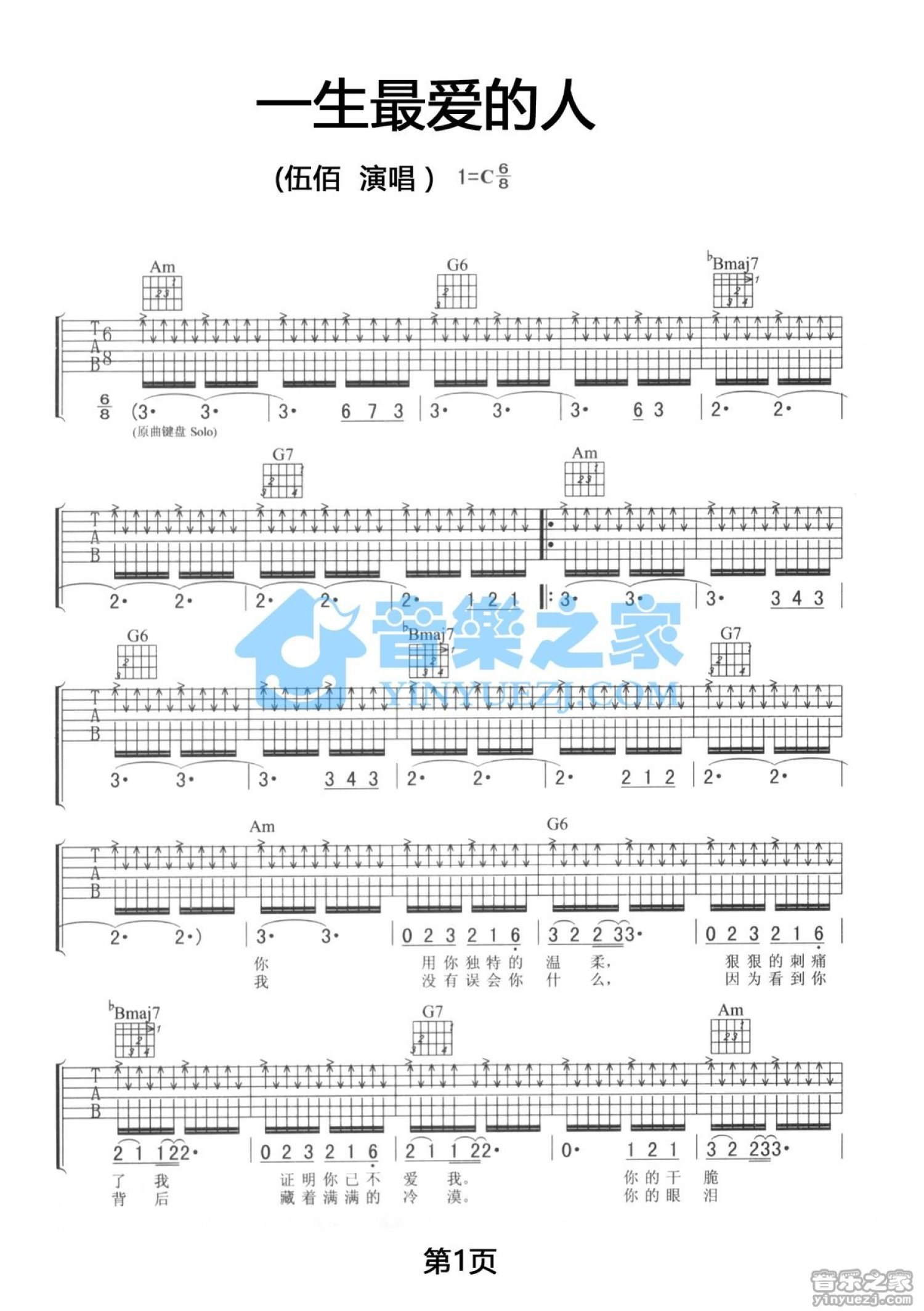 当前位置:琴谱网>吉他弹唱>一生中最爱的人