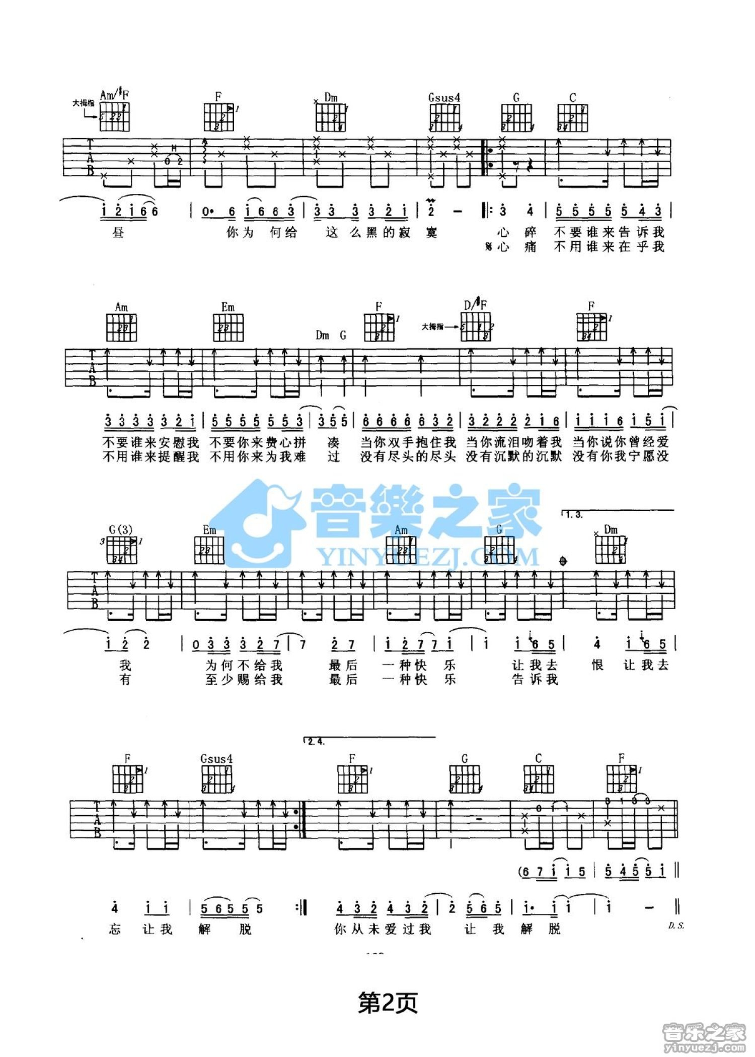 曲谱介绍: C调版《最后一种快乐》吉他弹唱六线谱