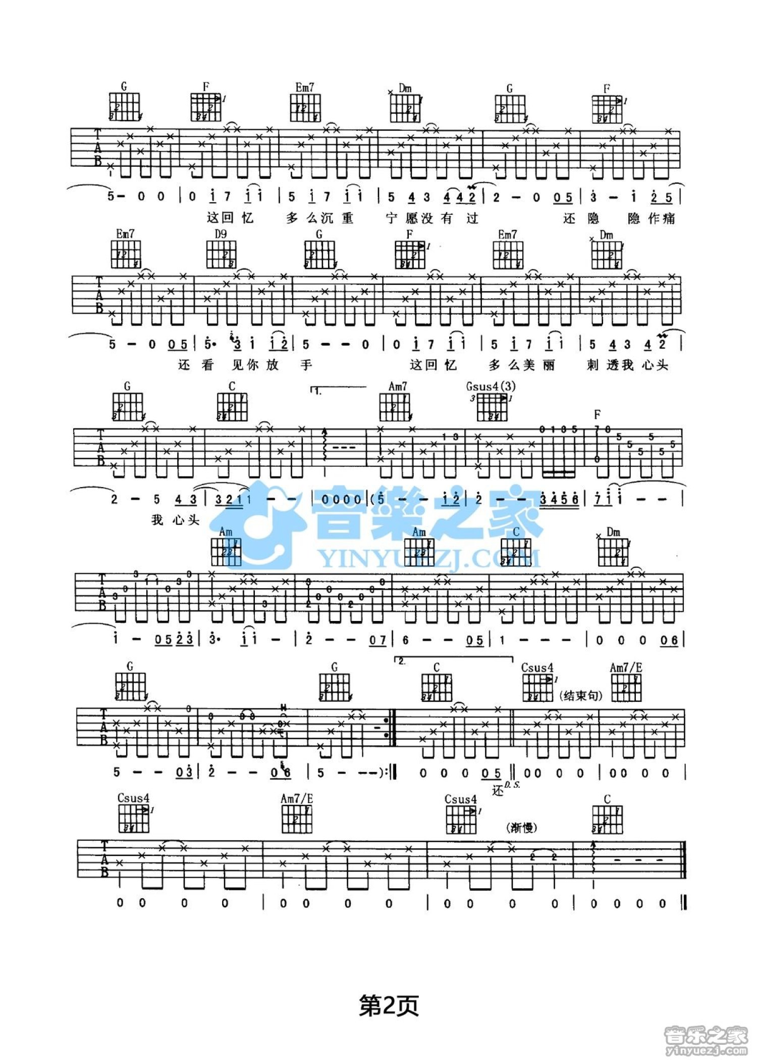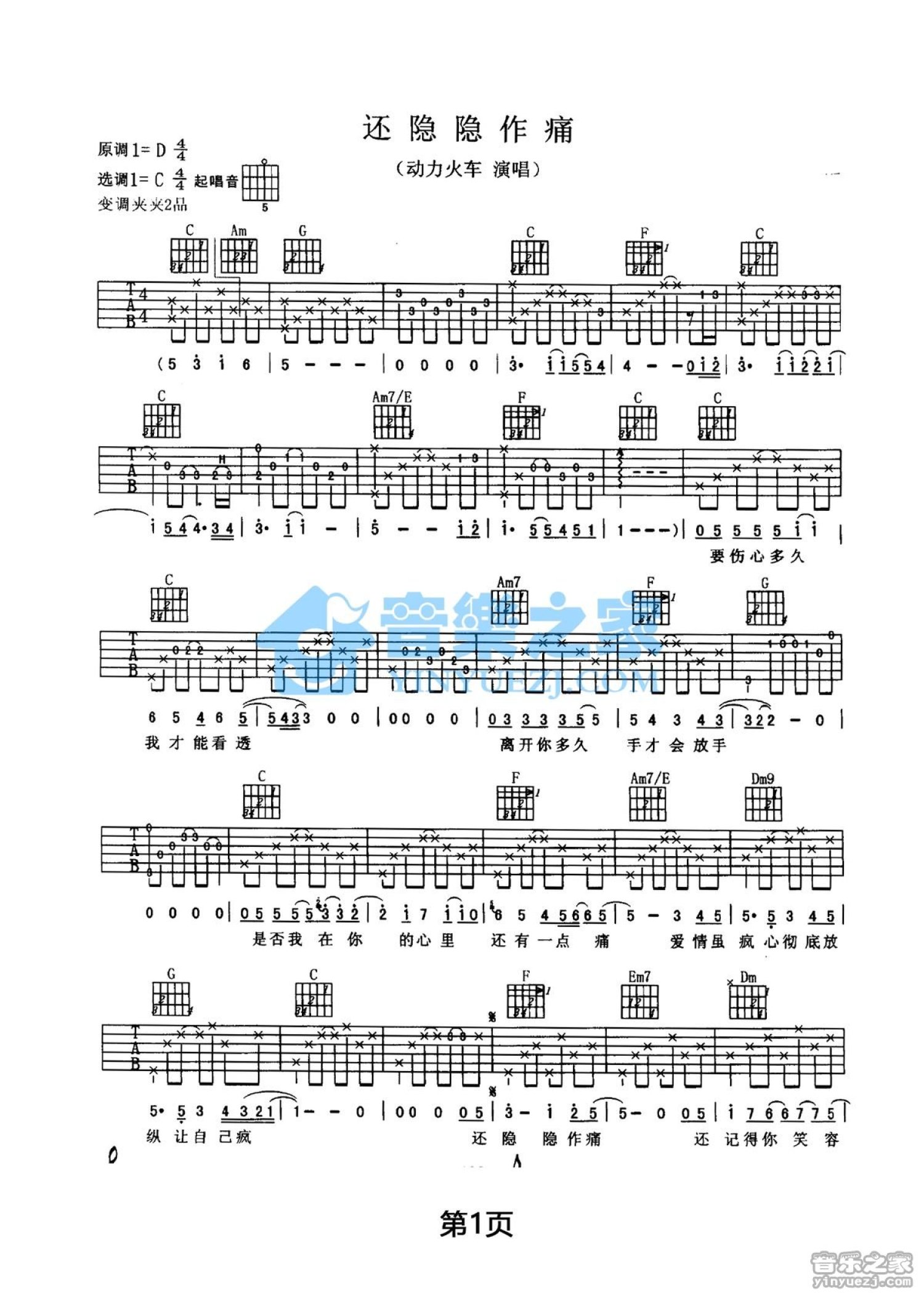 曲谱介绍: C调版《还隐隐作痛》吉他弹唱六线谱