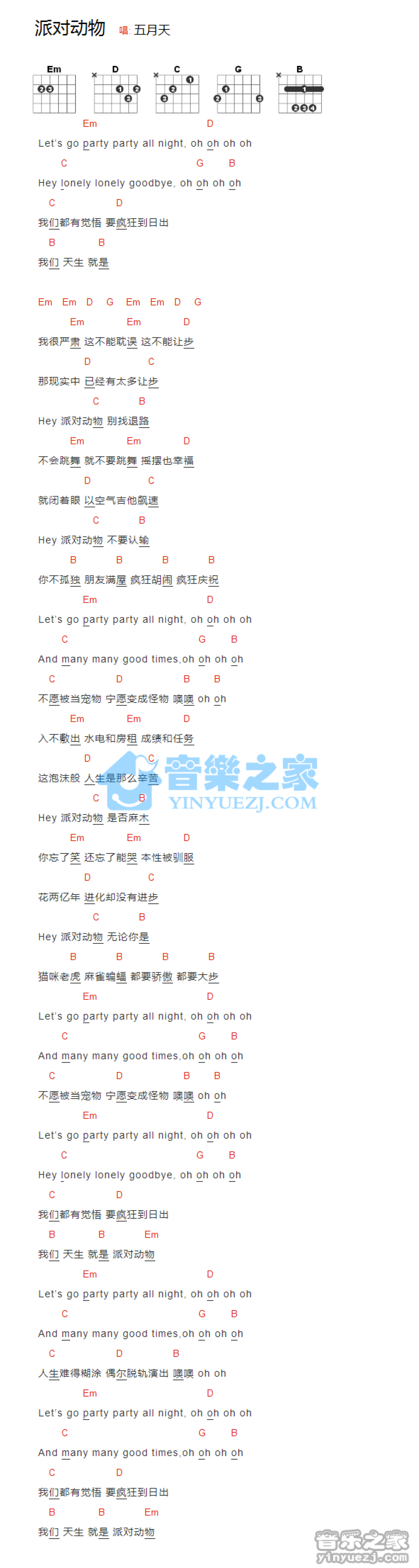 派对动物吉他谱 - 五月天 - 吉他弹唱谱 - 和弦谱