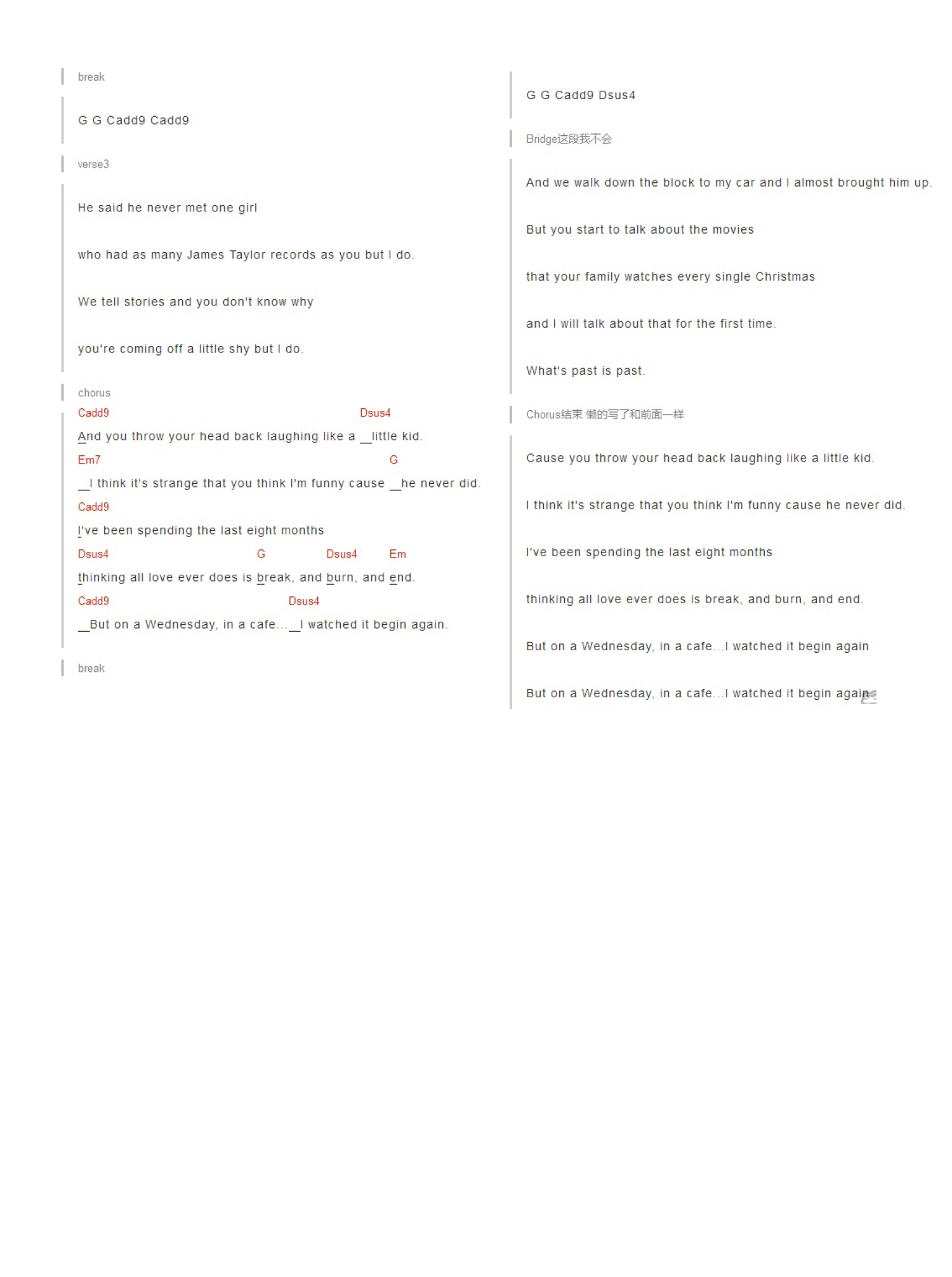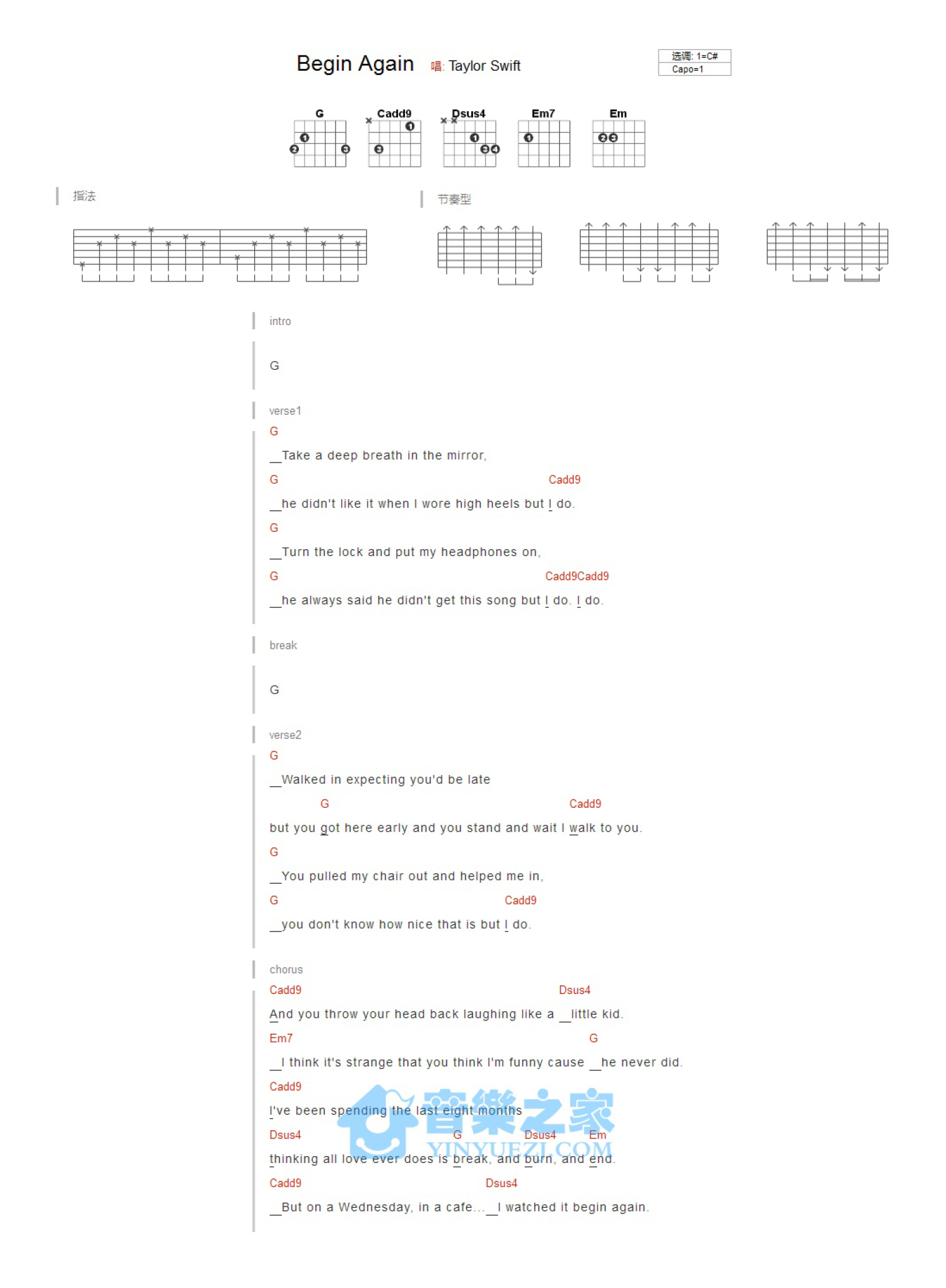 Begin Again吉他谱 - TaylorSwift - C调吉他弹唱谱 - 和弦谱