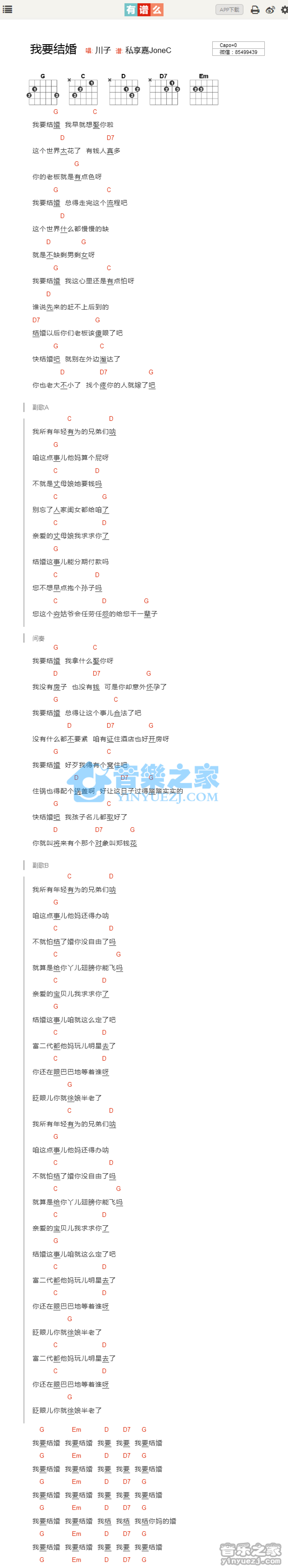 曲谱介绍: 《我要结婚》吉他和弦弹唱谱