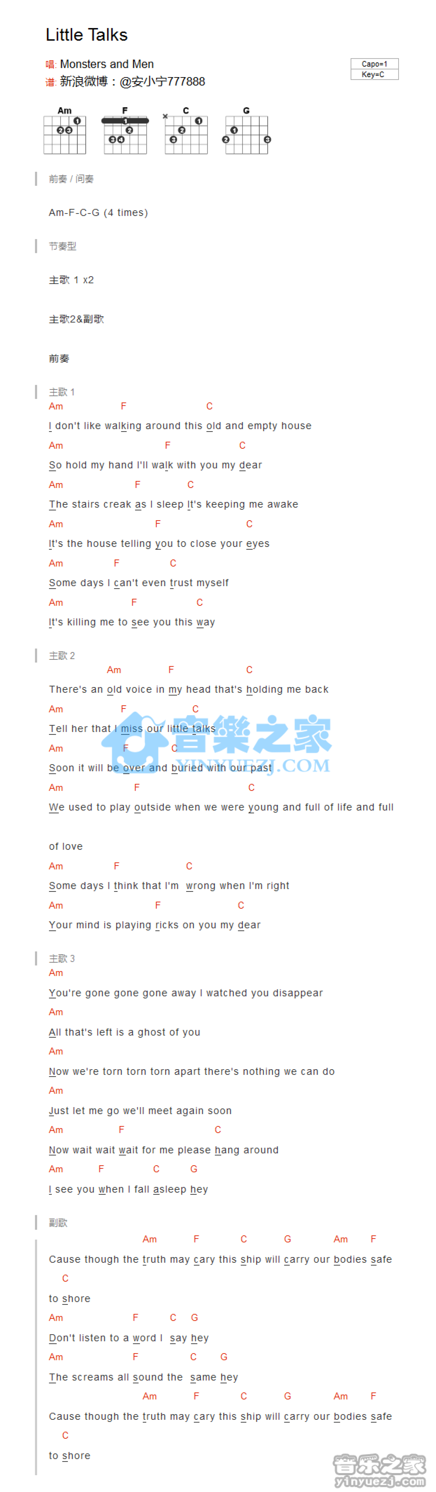 Little Talks吉他谱 - MonstersAndMen - C调吉他弹唱谱 - 和弦谱