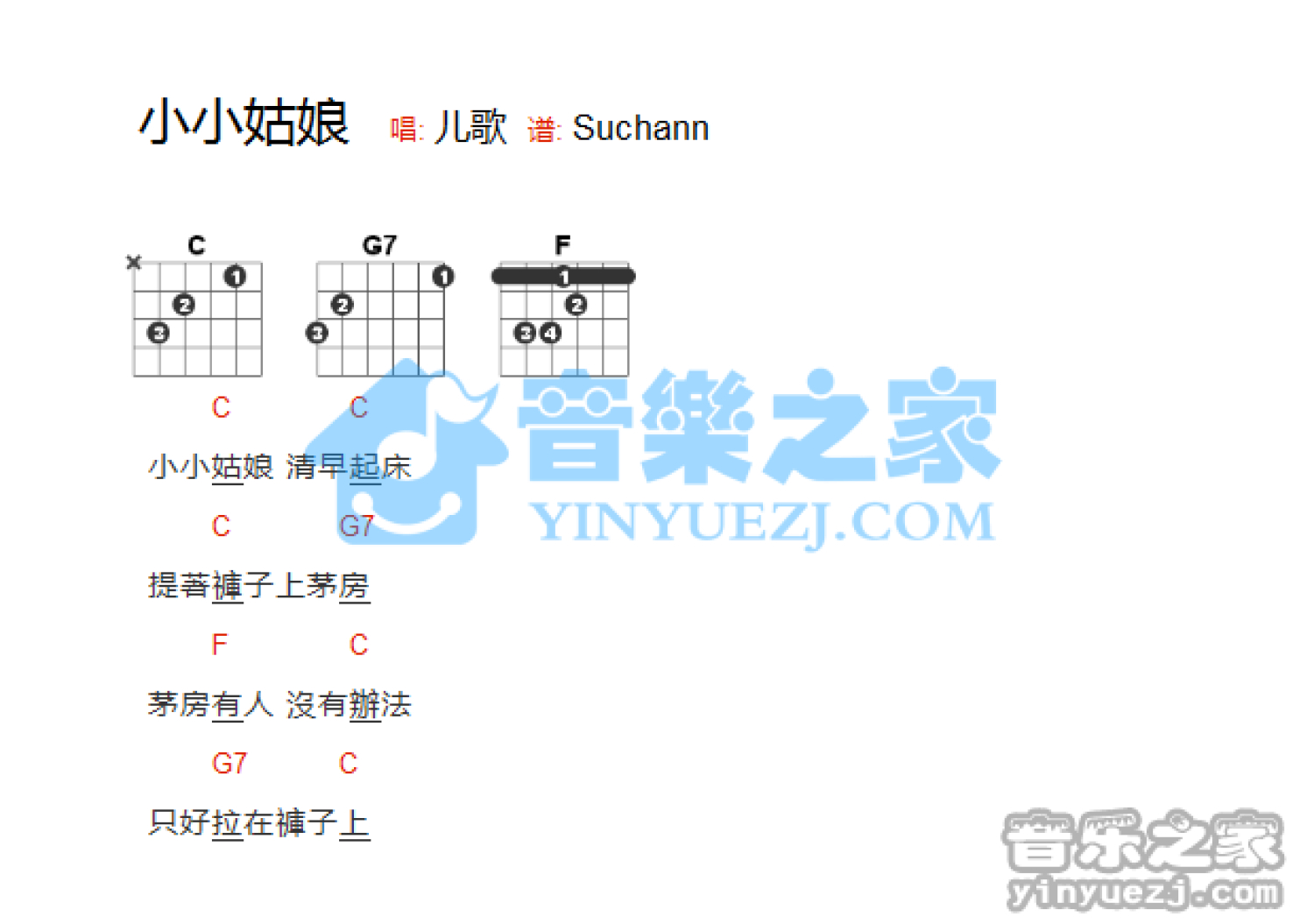 小小姑娘吉他谱 - 儿歌 - C调吉他弹唱谱 - 和弦谱