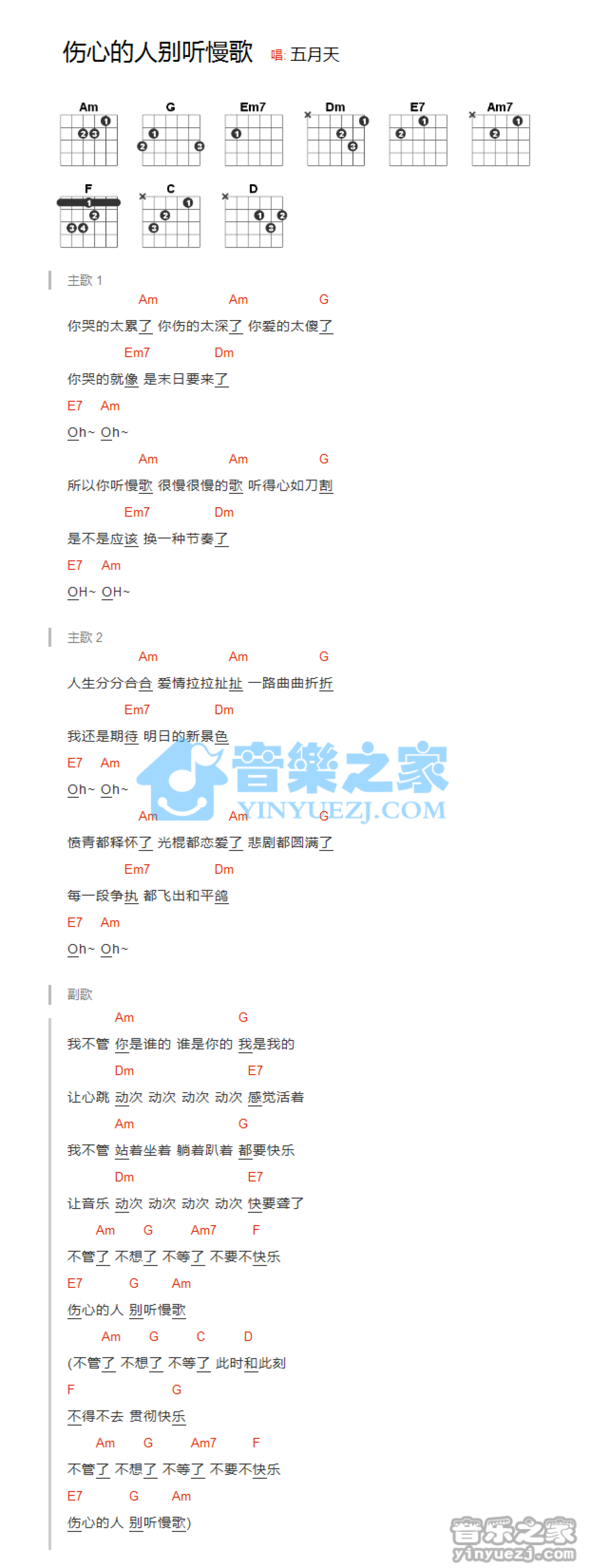 当前位置:琴谱网>吉他弹唱>伤心的人别听慢歌