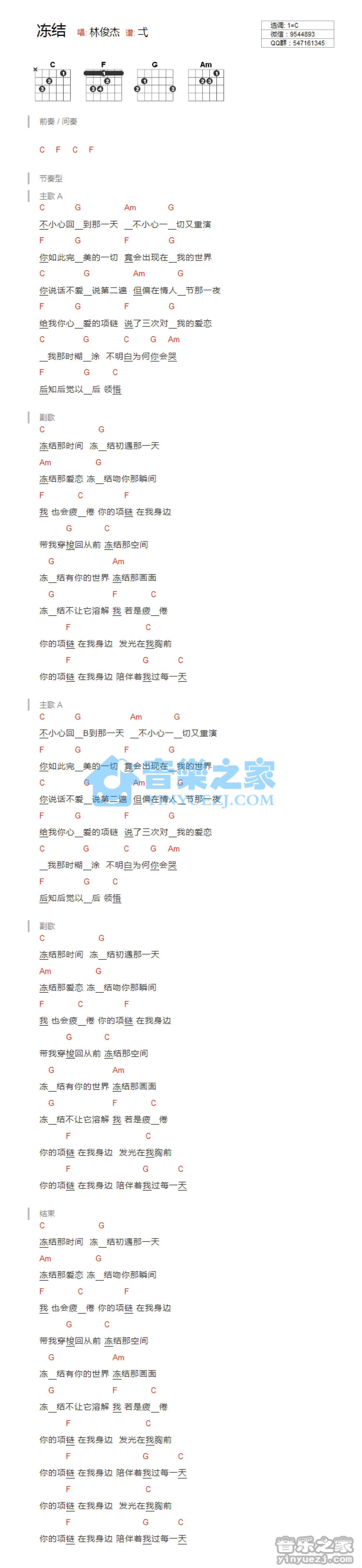 冻结吉他谱 - 林俊杰 - C调吉他弹唱谱 - 和弦谱