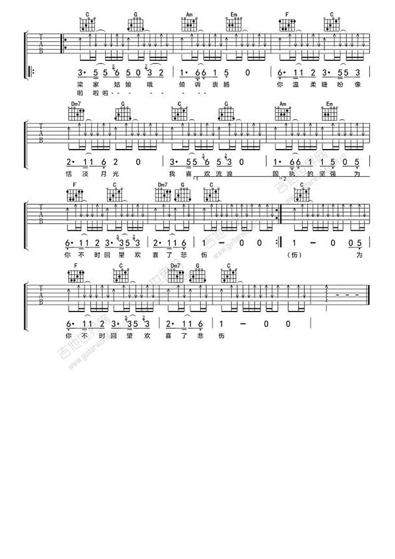 当前位置:琴谱网>吉他弹唱>梁家姑娘