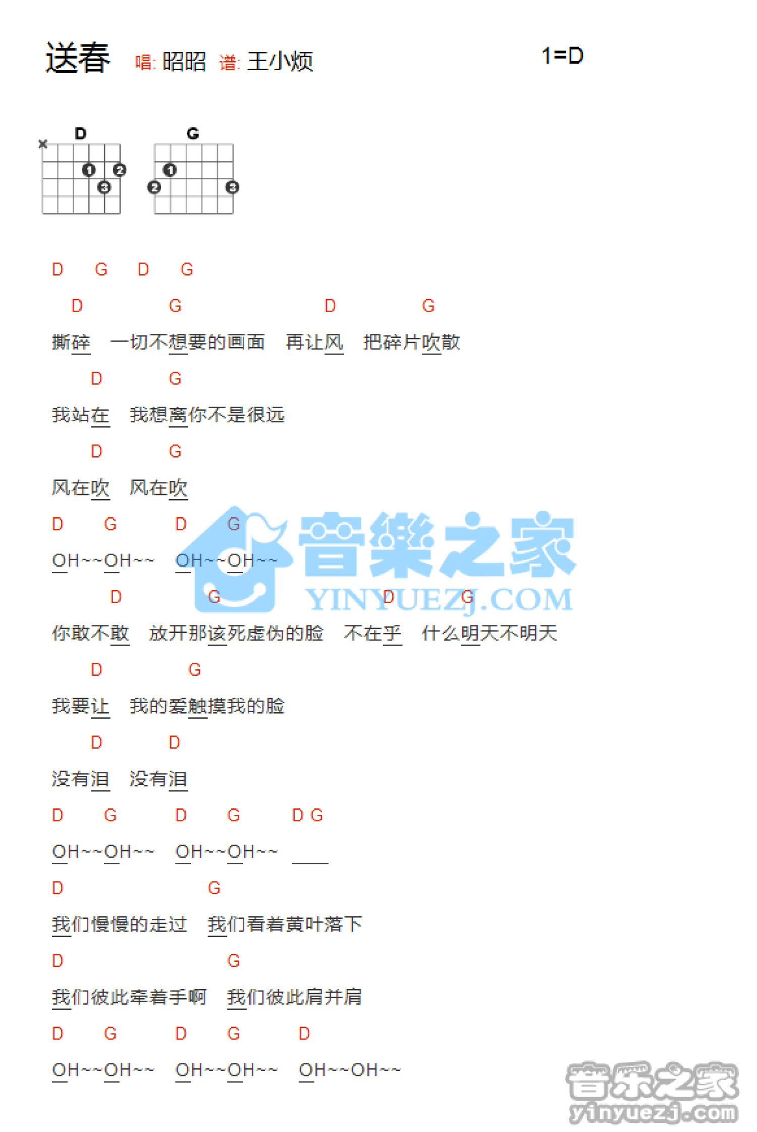 送春吉他谱 - 昭昭 - D调吉他弹唱谱 - 和弦谱