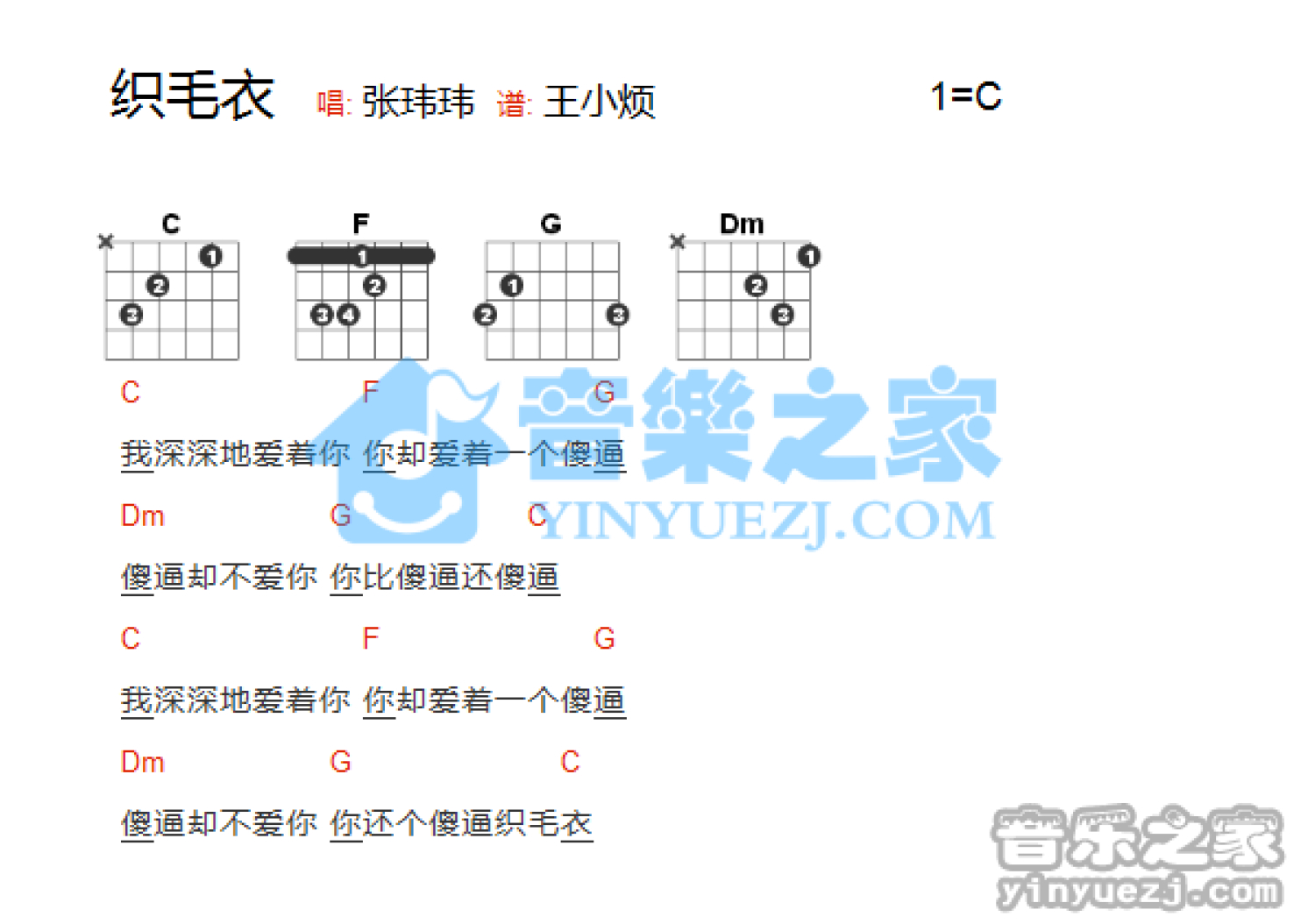 织毛衣吉他谱 - 张玮玮 - C调吉他弹唱谱 - 和弦谱