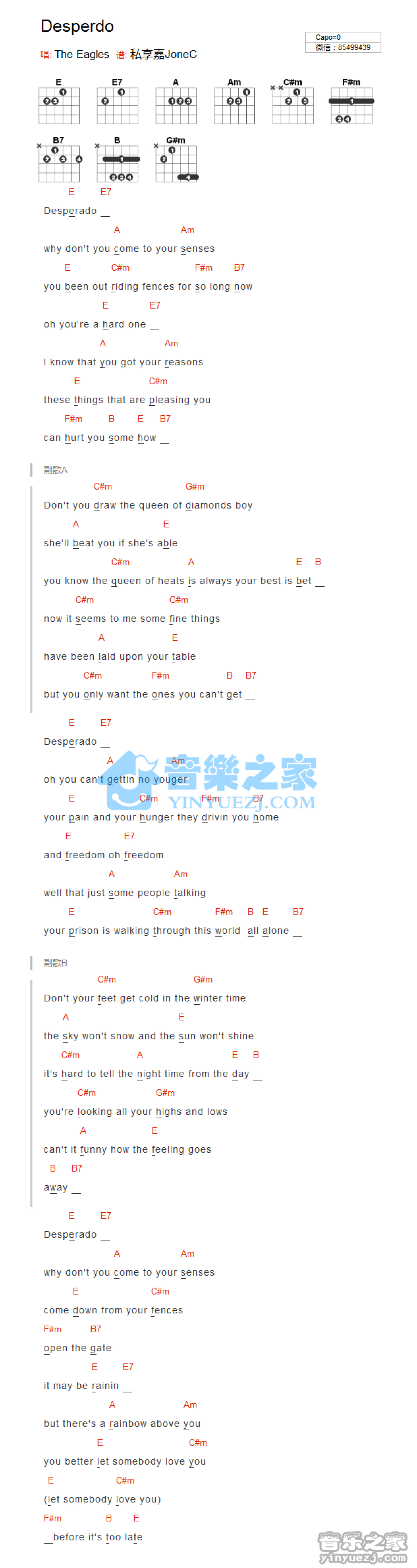 Desperdo吉他谱 - TheEagles - E调吉他弹唱谱 - 和弦谱