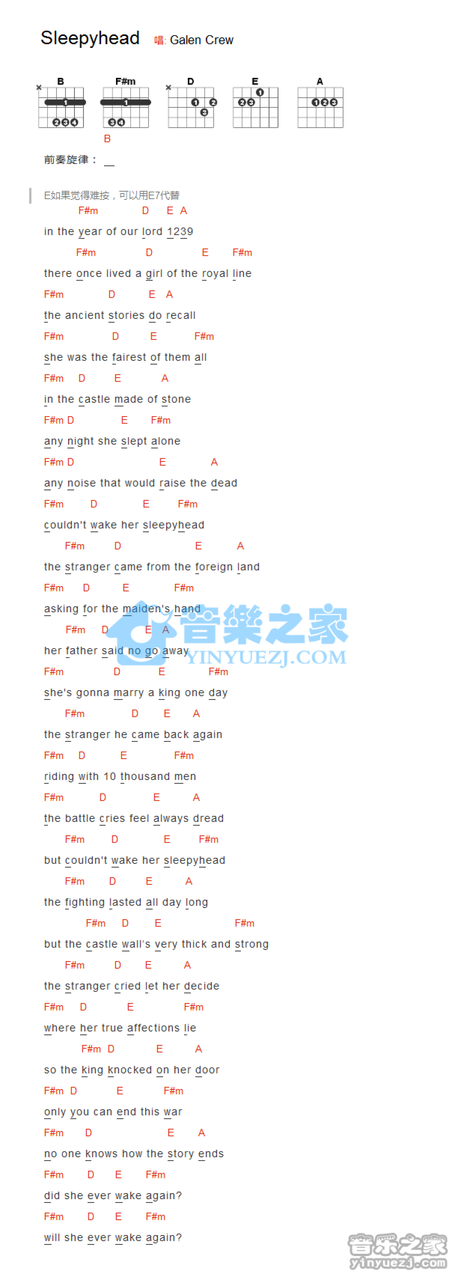 Sleepyhead吉他谱 - GalenCrew - 吉他弹唱谱 - 和弦谱
