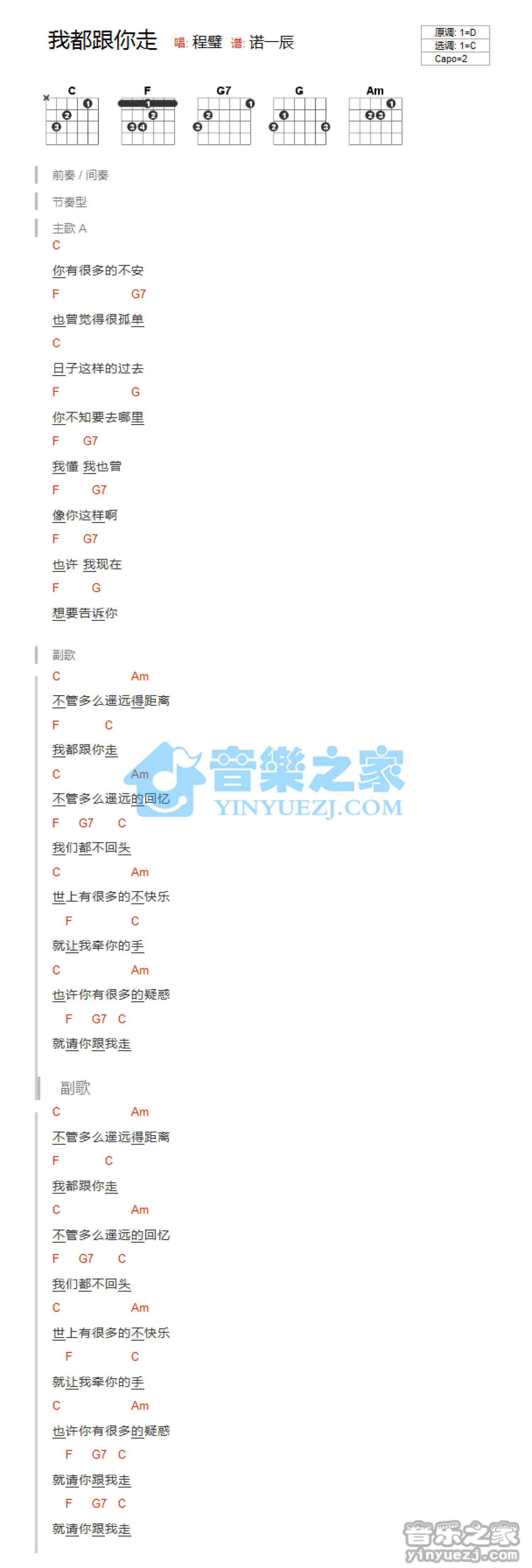 我都跟你走吉他谱 - 程璧 - C调吉他弹唱谱 - 和弦谱