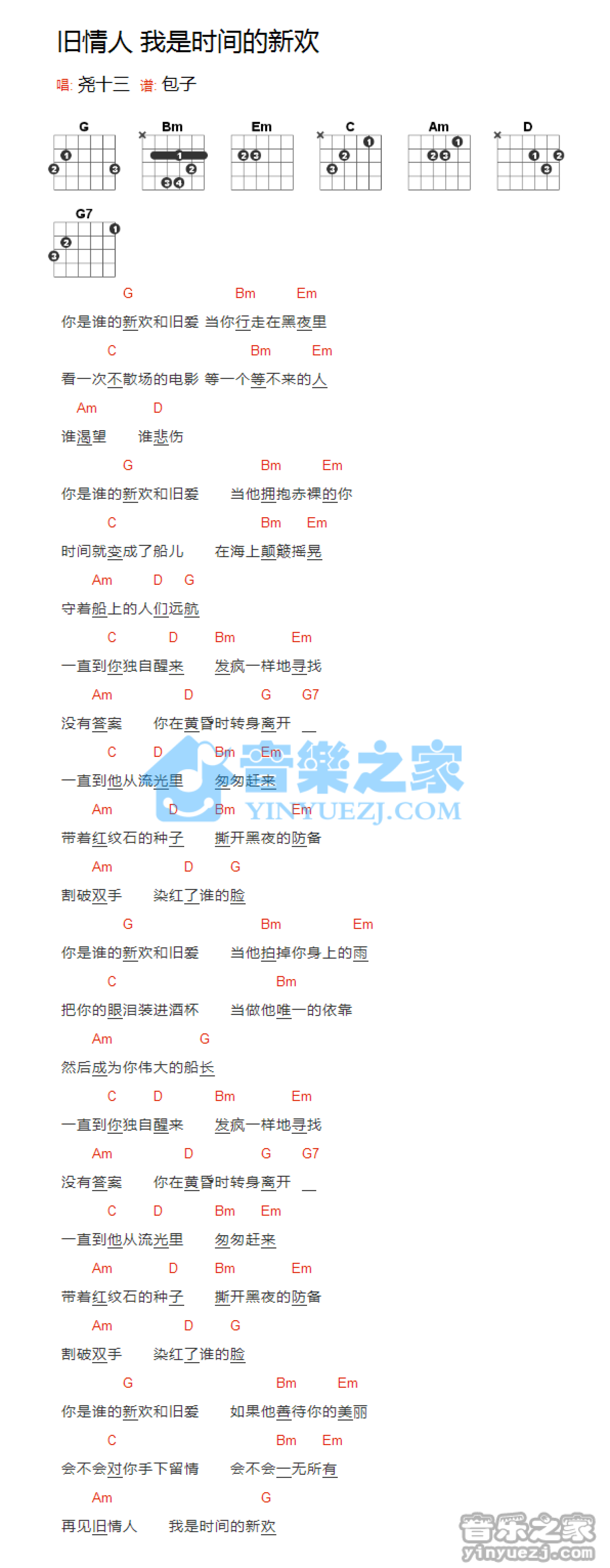 曲谱介绍: 《旧情人我是时间的新欢》吉他和弦弹唱谱
