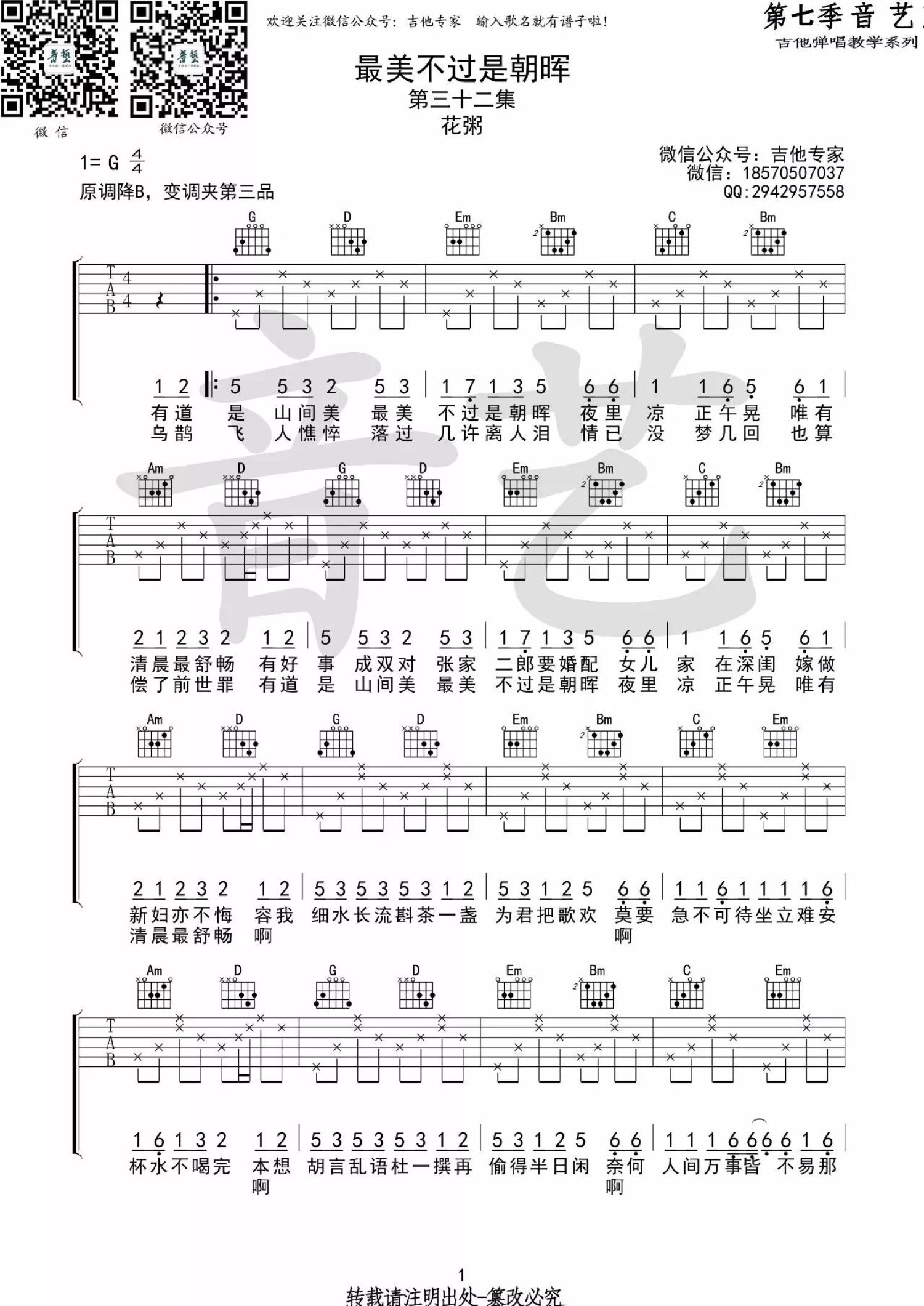 吉他弹唱G调来源:吉他专家1521 浏览2018-03-19 12:40发布图谱共2页