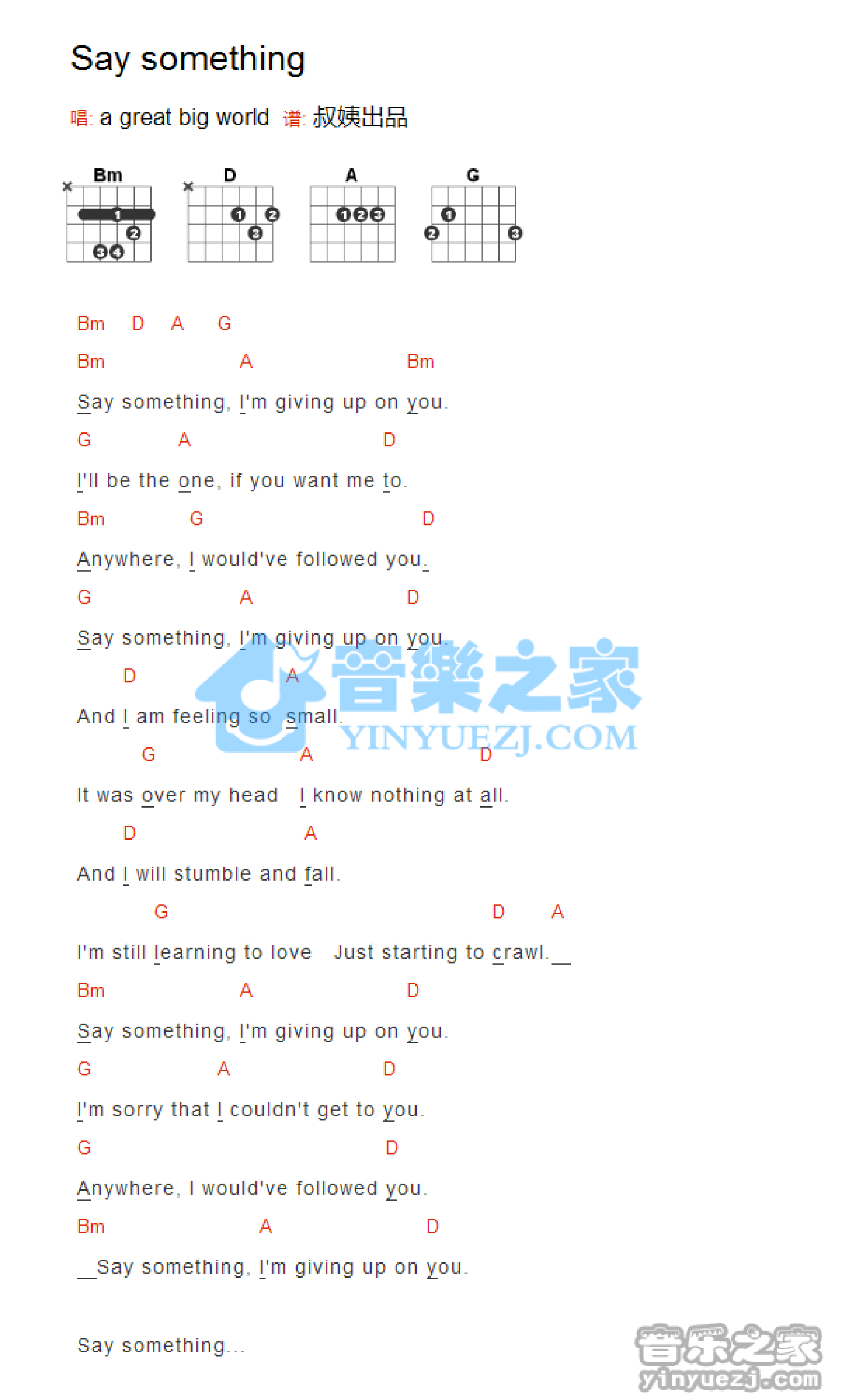 曲谱介绍: 《Say something》吉他和弦弹唱谱