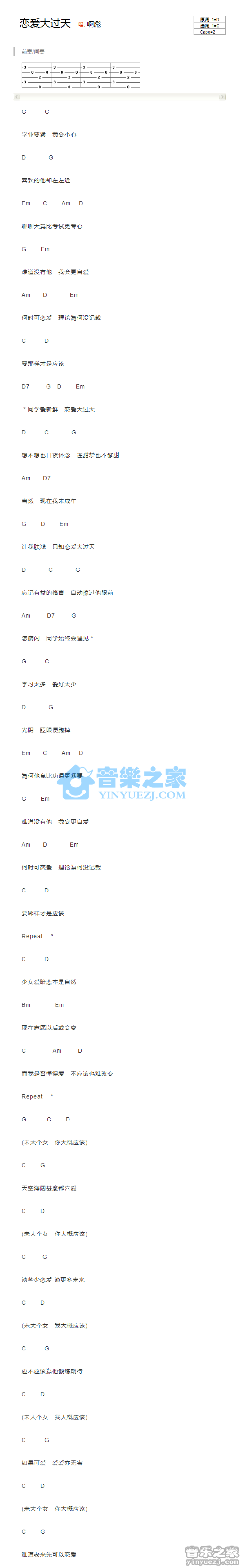 曲谱介绍: 《恋爱大过天》C调版吉他和弦弹唱谱