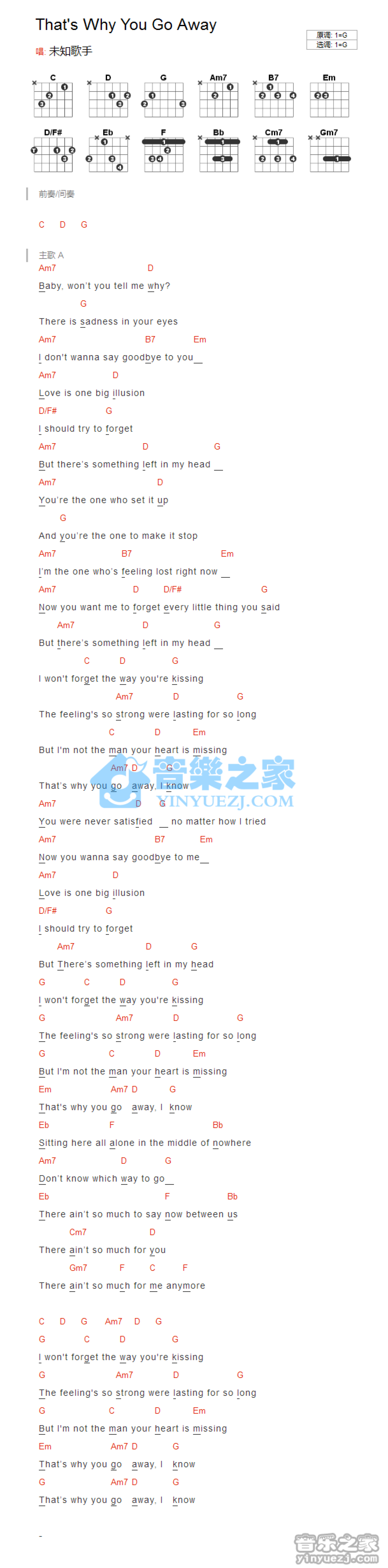 曲谱介绍: G调版《That'sWhyYouGoAway》吉他和弦弹唱谱