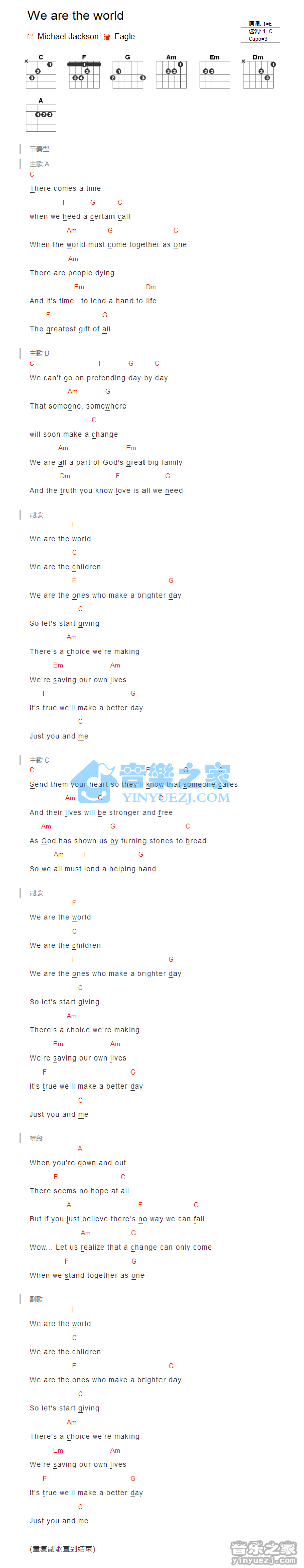 We are the word吉他谱 - MichaelJackson - C调吉他弹唱谱 - 和弦谱