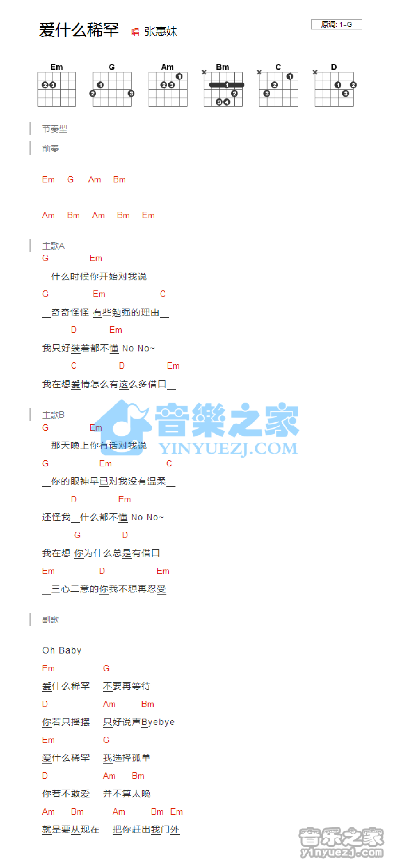爱什么稀罕吉他谱 - 张惠妹 - G调吉他弹唱谱 - 和弦谱