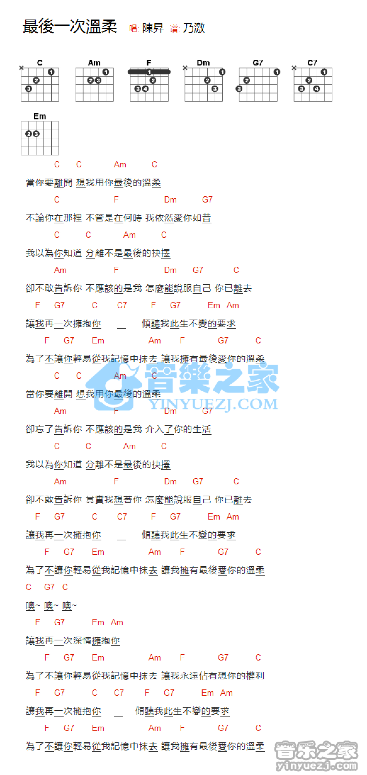 当前位置:琴谱网>吉他弹唱>最后一次温柔