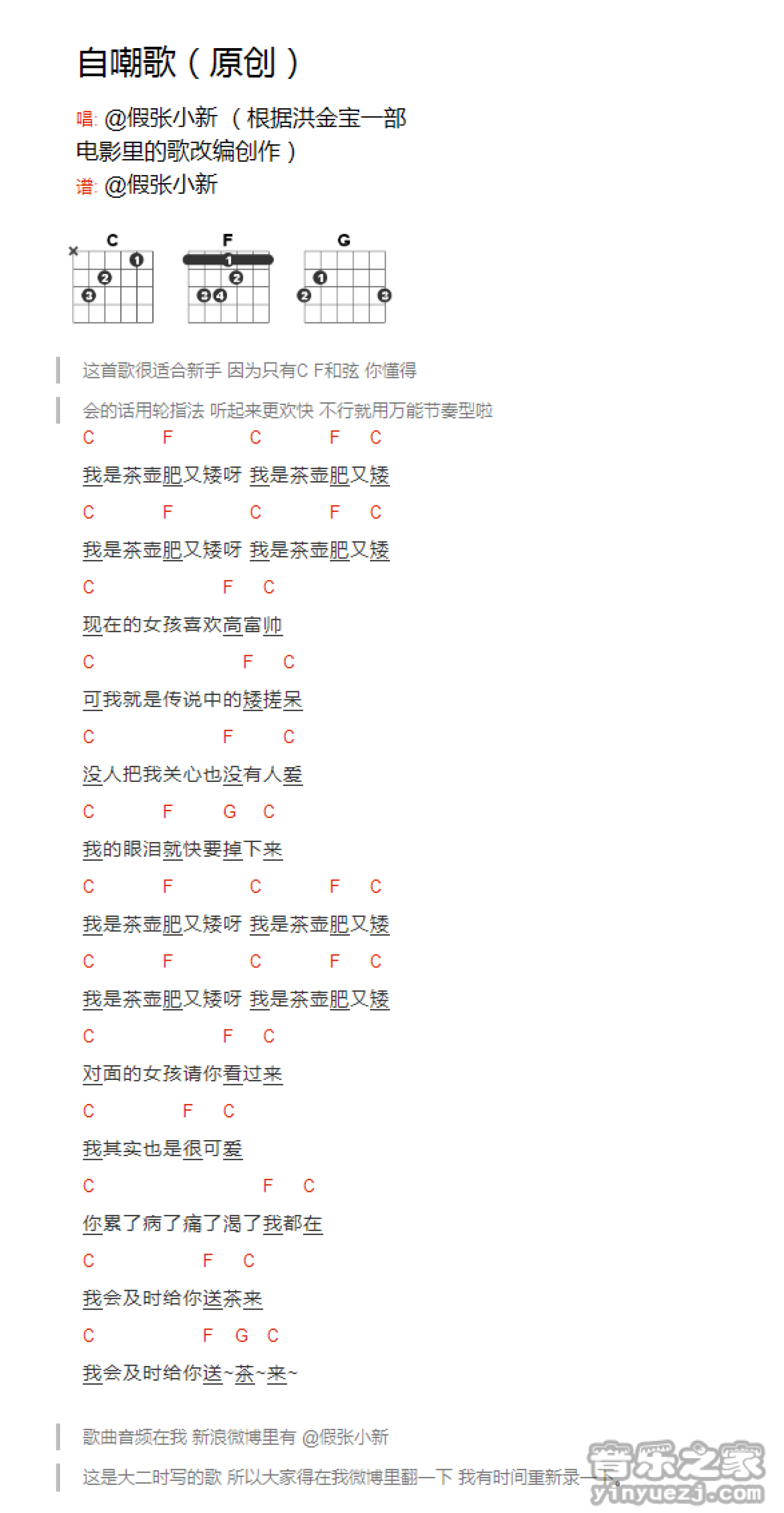 自嘲歌吉他谱 - 假张小新 - C调吉他弹唱谱 - 和弦谱