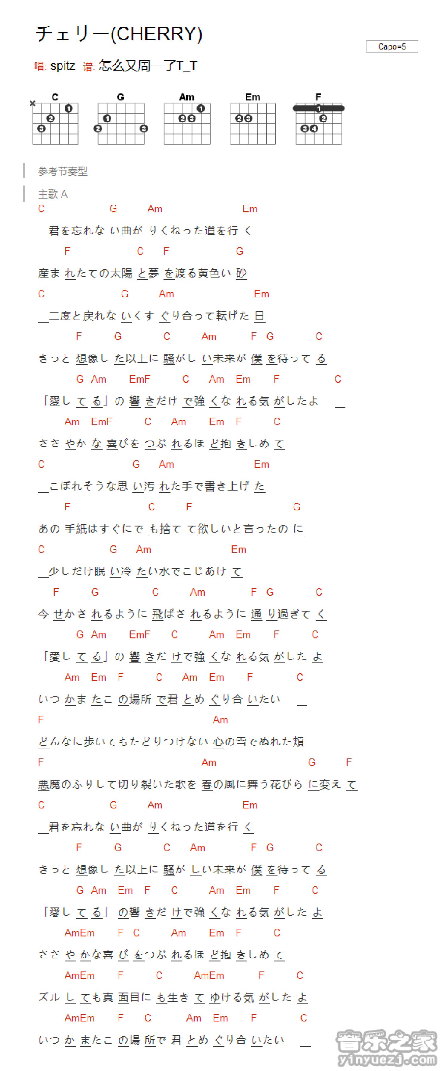 CHERRY吉他谱 - Spitz - C调吉他弹唱谱 - 和弦谱