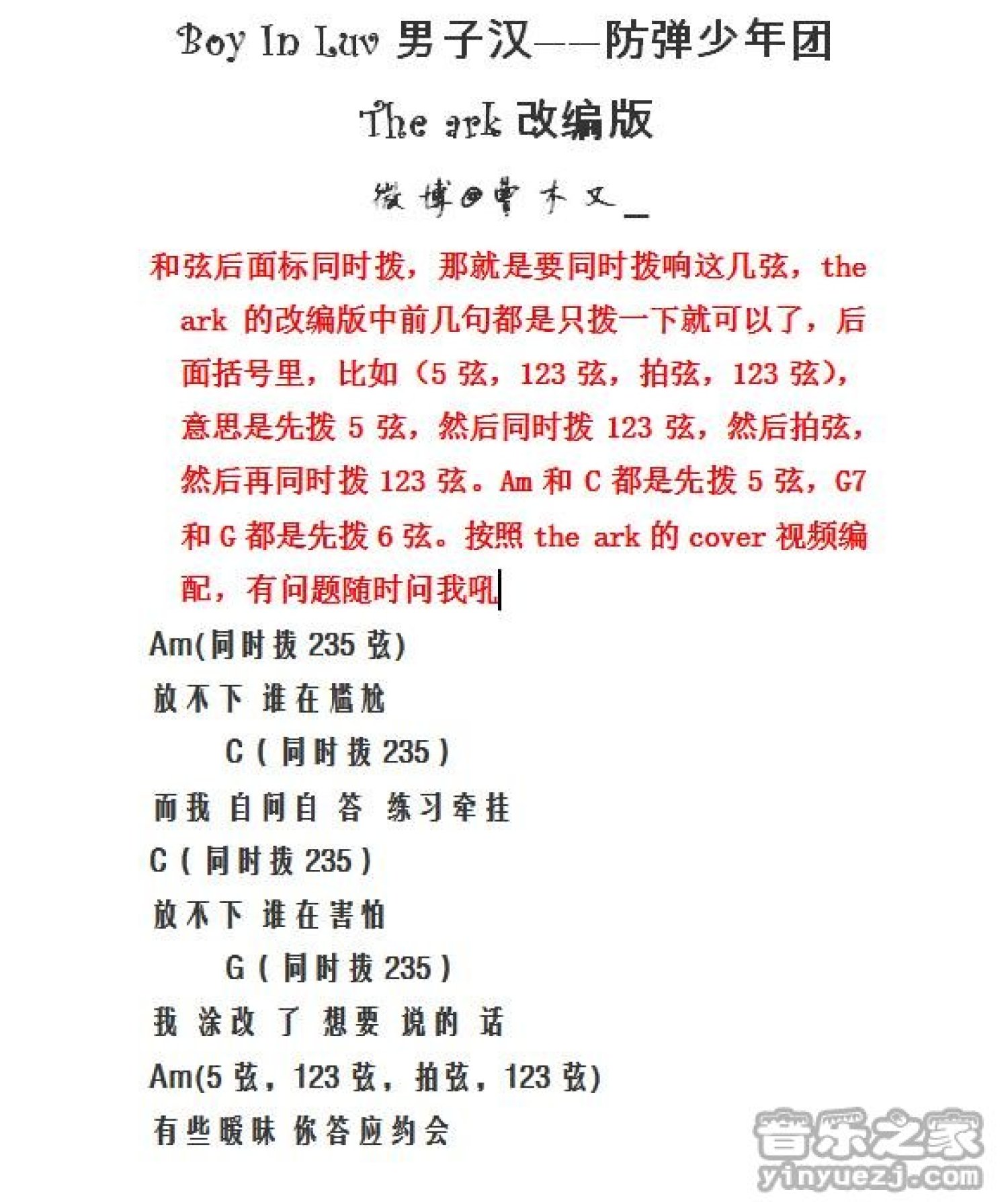 Boy In Luv男子汉吉他谱 - 防弹少年团 - C调吉他弹唱谱 - 和弦谱