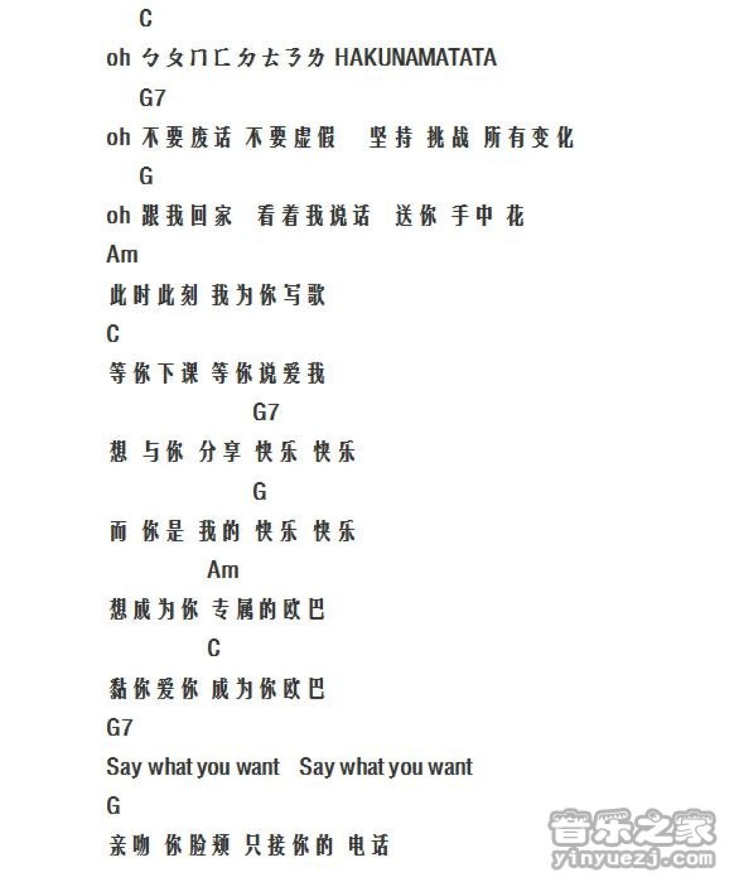曲谱介绍: 《BoyInLuv男子汉》吉他和弦弹唱谱