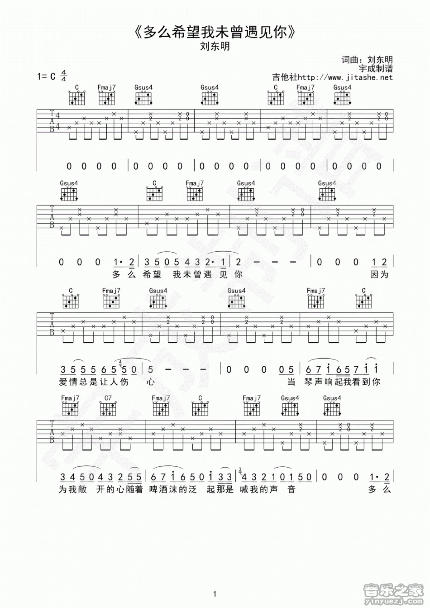 多么希望我未曾遇见你吉他谱 - 刘东明 - C调吉他弹唱谱