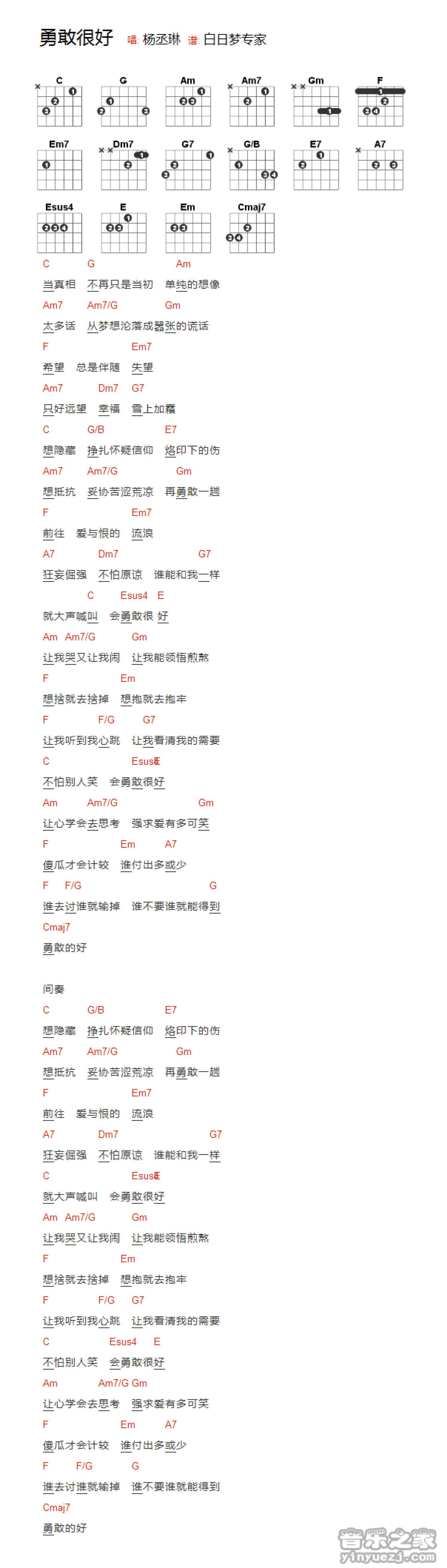 曲谱介绍: 《勇敢很好》吉他和弦弹唱谱
