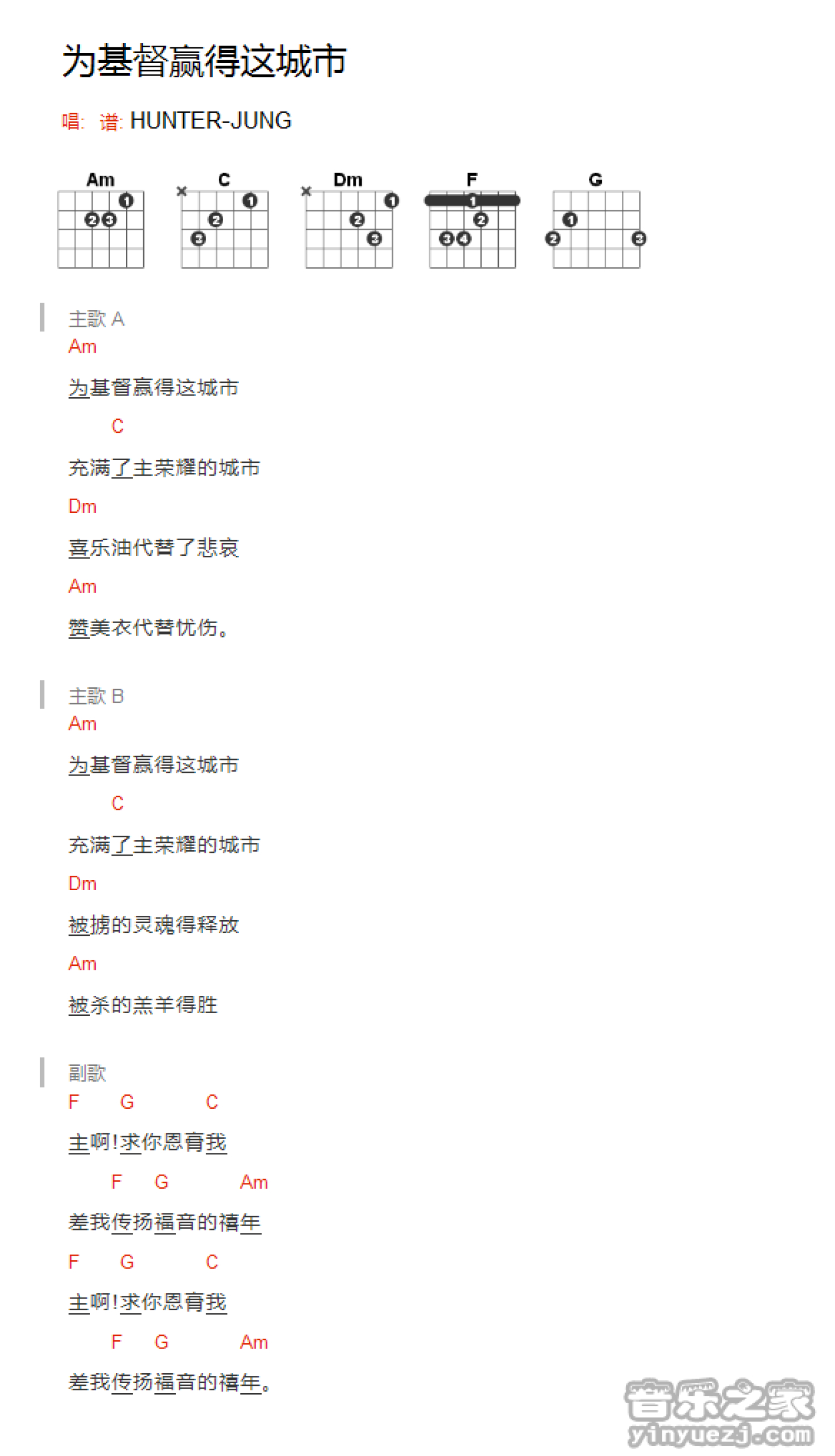 曲谱介绍: HUNTERJUNG《为基督赢得这城市》吉他和弦弹唱谱