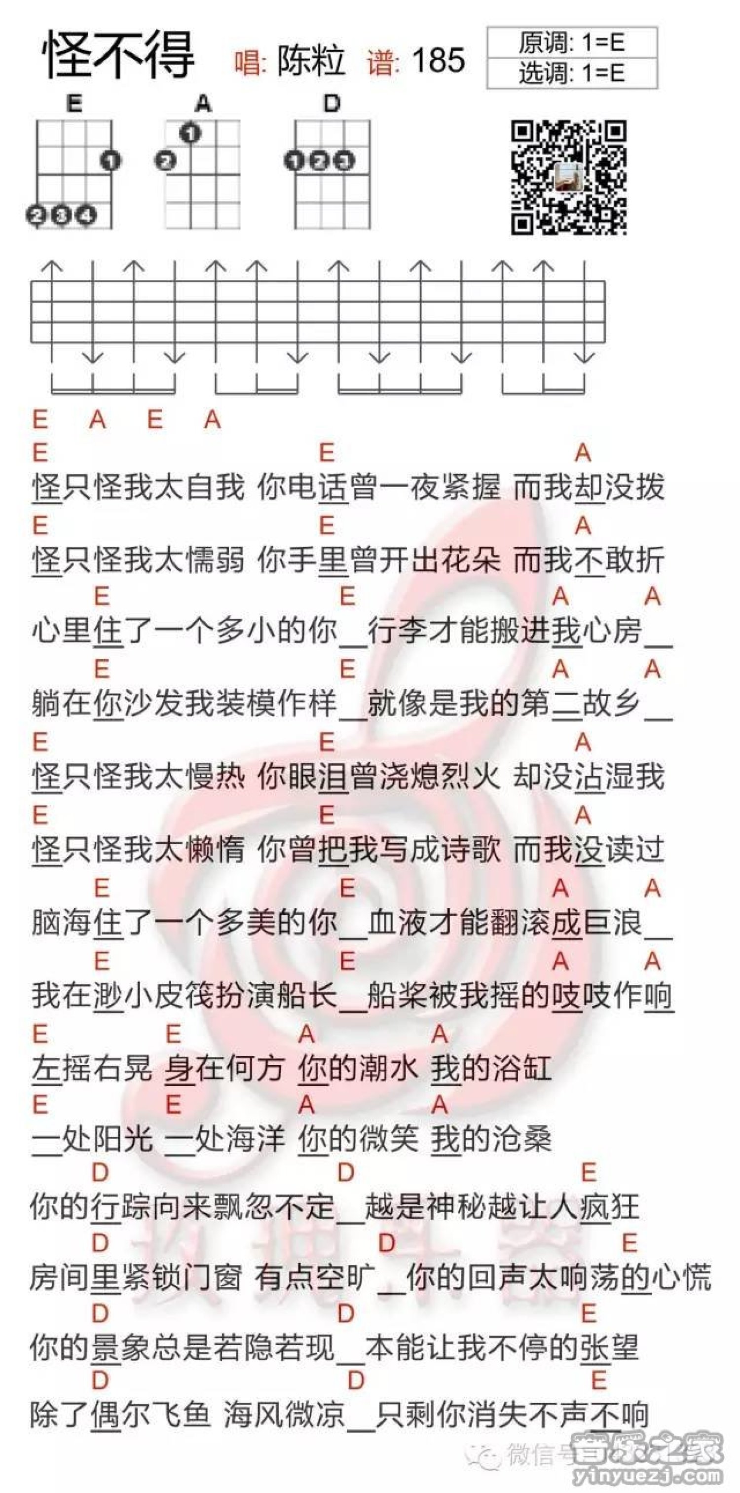 曲谱介绍: 版本一《怪不得》尤克里里弹唱谱