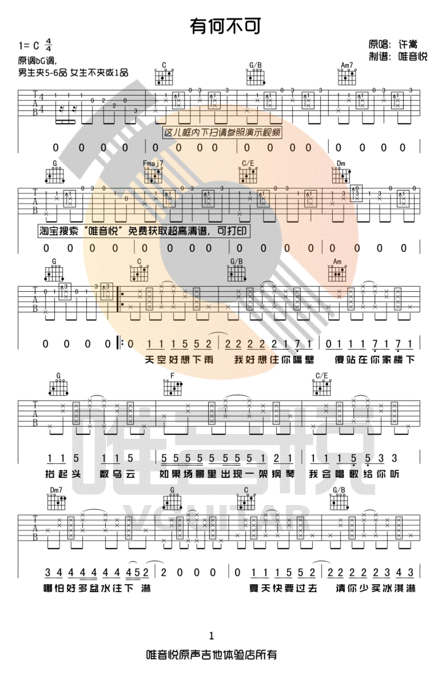 有何不可吉他谱 - 许嵩 - C调吉他弹唱谱
