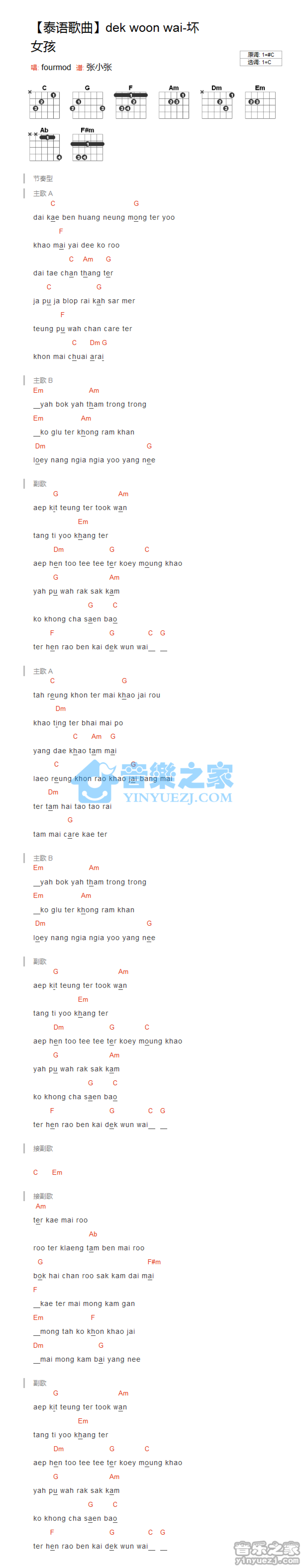 dek woon wai吉他谱 - FourMod - C调吉他弹唱谱 - 和弦谱