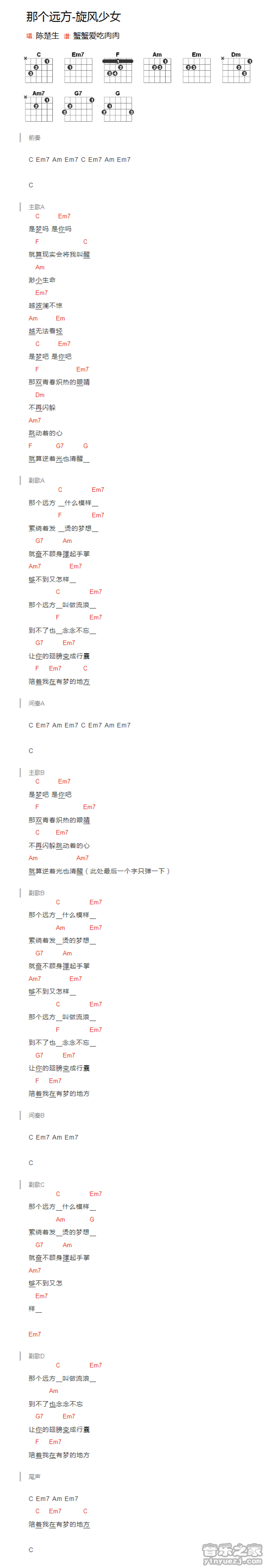 那个远方-旋风少女吉他谱 - 陈楚生 - 吉他弹唱谱 - 和弦谱