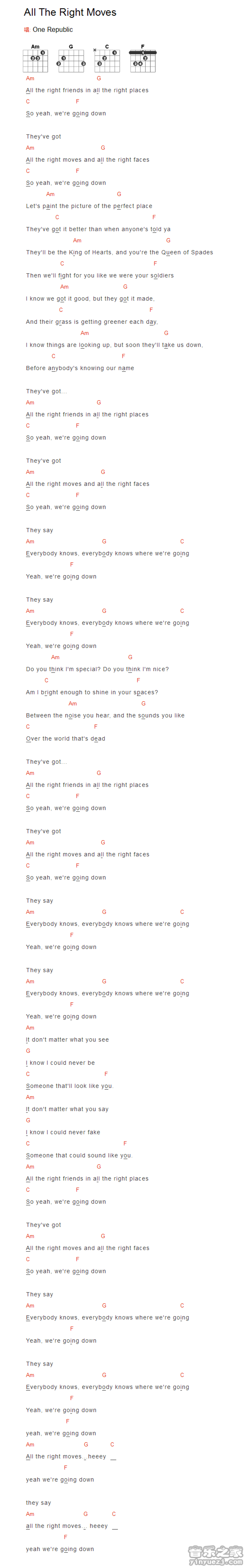 All The Ringht Moves吉他谱 - OneRepublic - 吉他弹唱谱 - 和弦谱