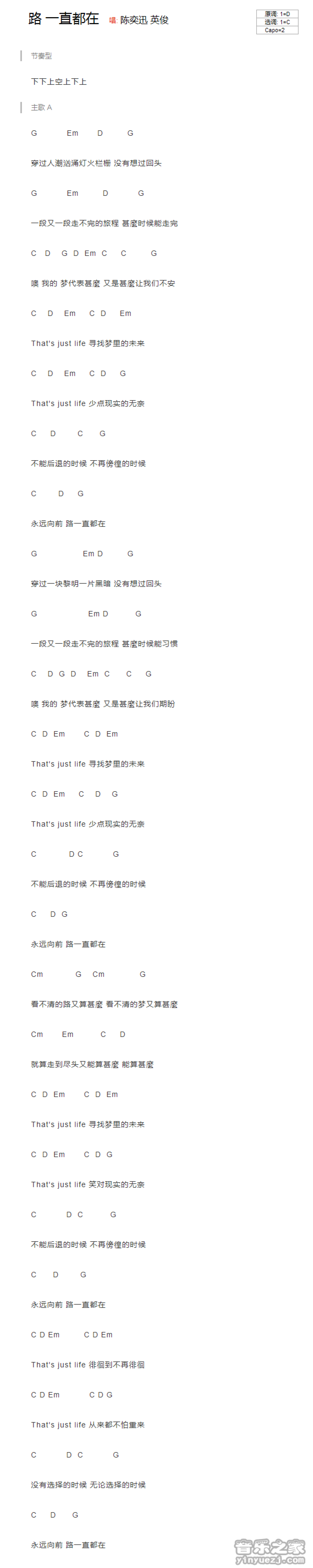 路一直在吉他谱 - 陈奕迅 - C调吉他弹唱谱 - 和弦谱