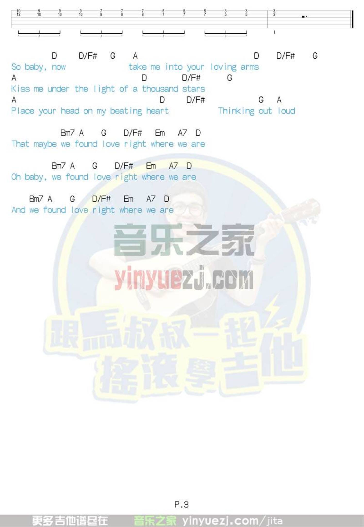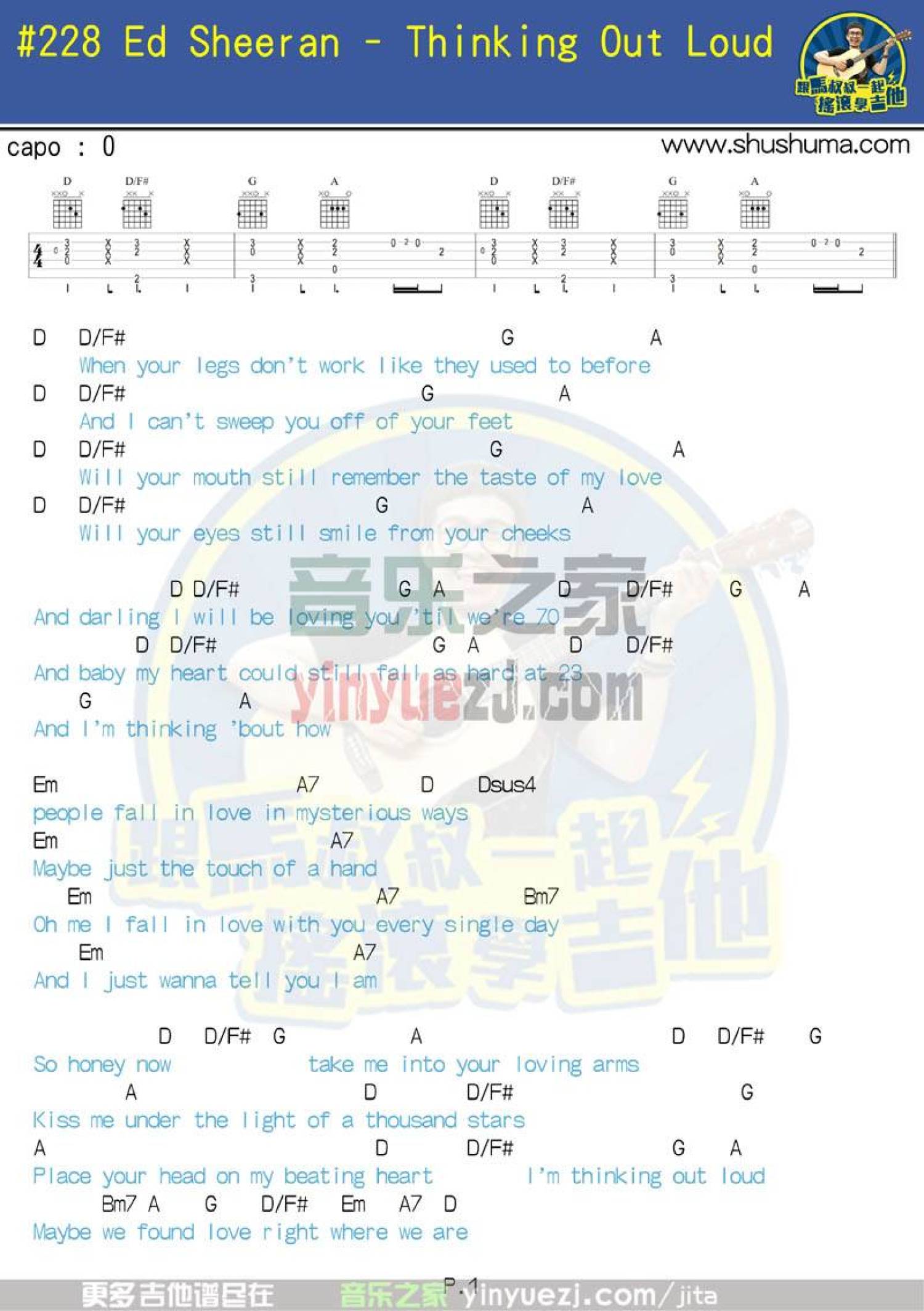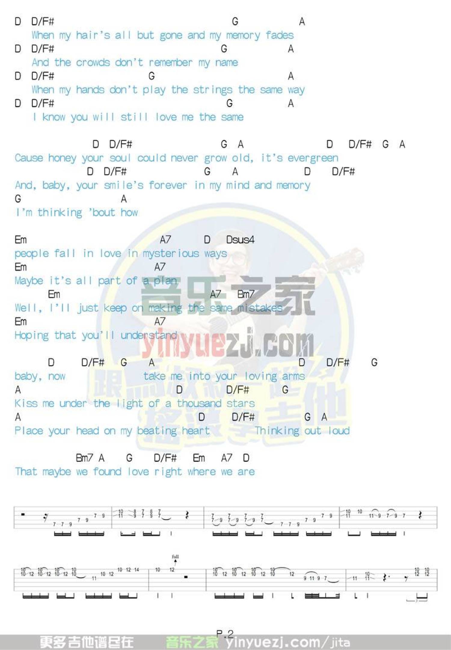曲谱介绍: 《thinkingoutloud》吉他弹唱六线谱