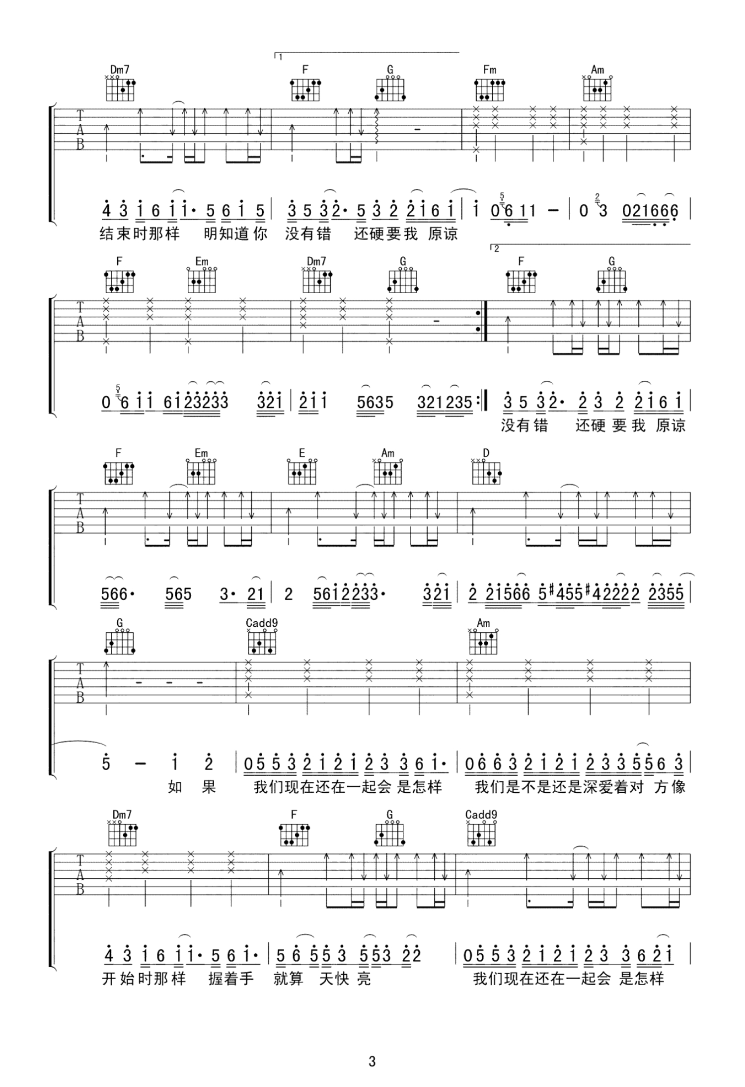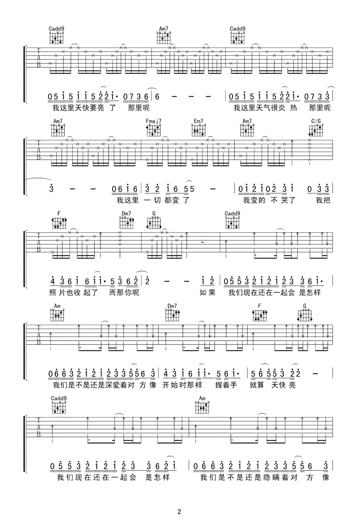 吉他弹唱C调来源:木头音乐屋1489 浏览2021-09-05 12:26发布图谱共4页