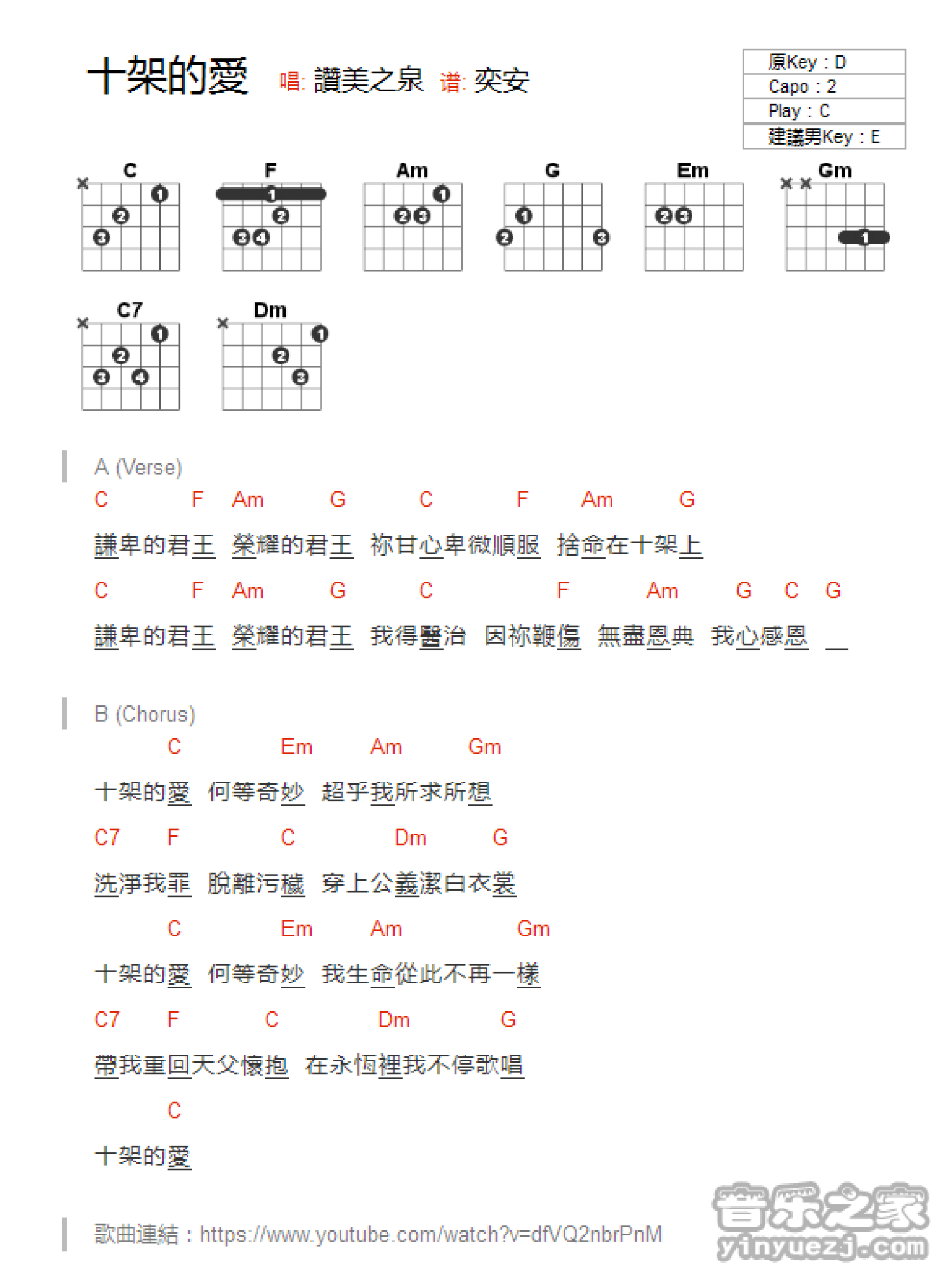 十架的爱吉他谱 - 赞美之泉 - C调吉他弹唱谱 - 和弦谱